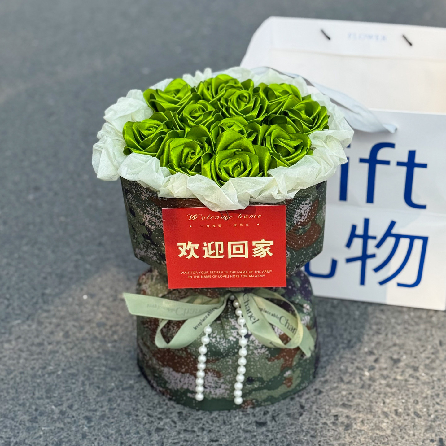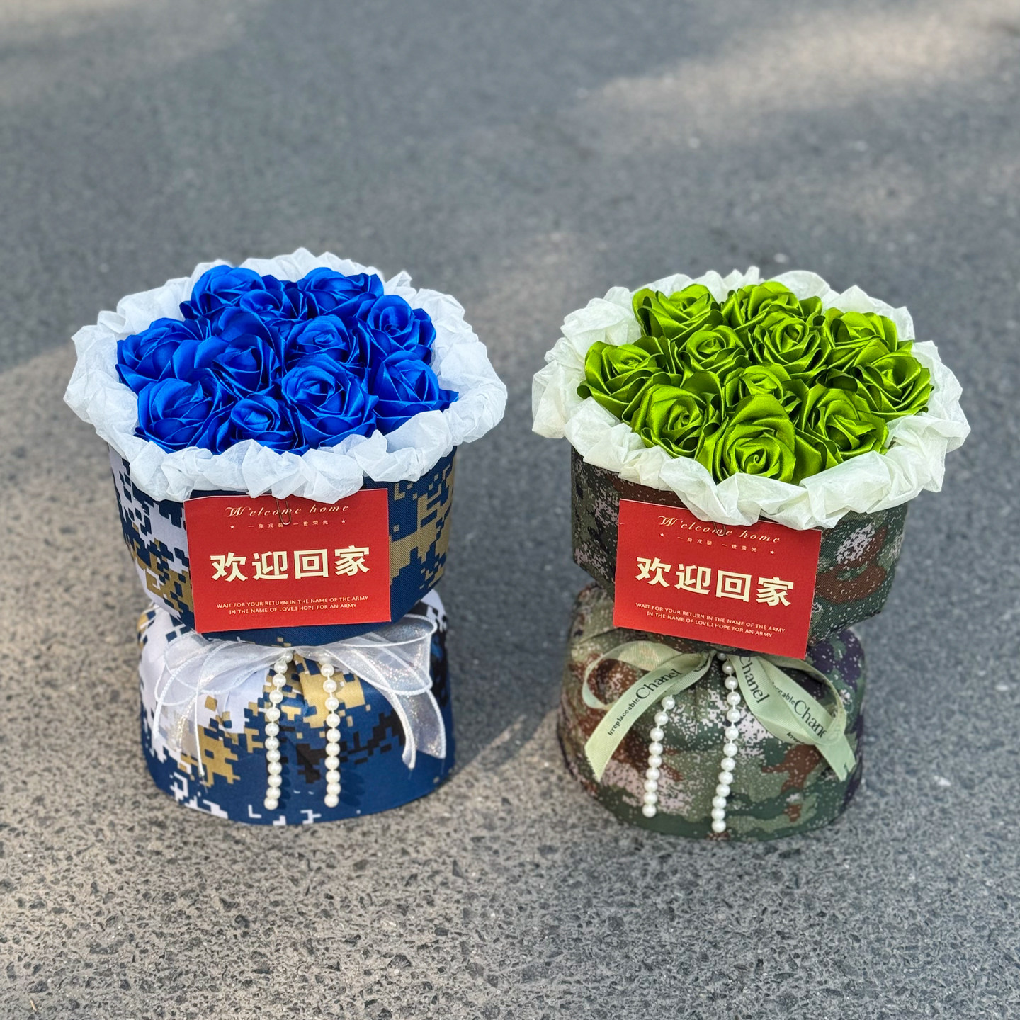 退伍季 礼物创意手工编织玫瑰花束送兵哥哥老公男朋友探亲接站礼物
