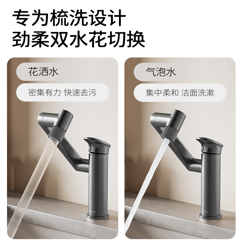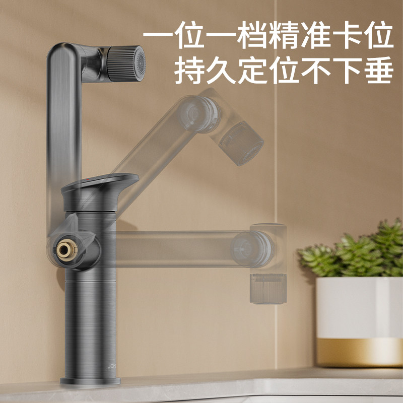 九牧枪灰机械臂万向洗手盆冷热水龙头洗脸盆卫生间浴室柜面盆龙头