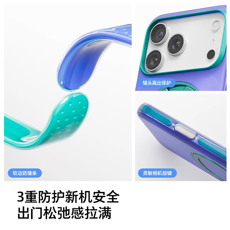 17镜头保护 适用iPhone17promax苹果16手机15磁吸外壳保护支架17p防摔pm官巨好看 图拉斯O3Hue撞色支点壳新款