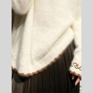 上衣胖mm秋冬 胖妹妹宽松圆领针织衫 软糯慵懒毛衣女大码 内搭打底衫