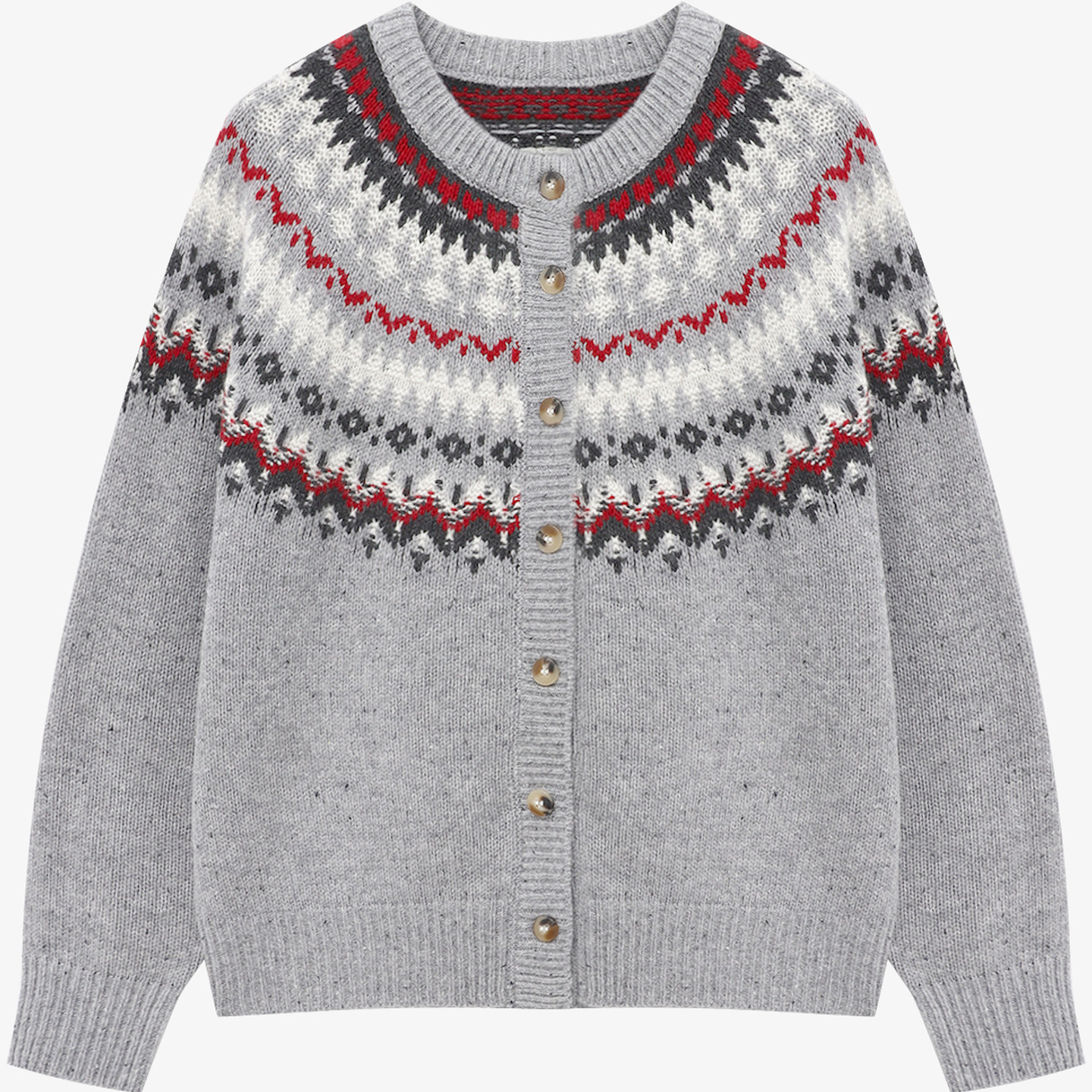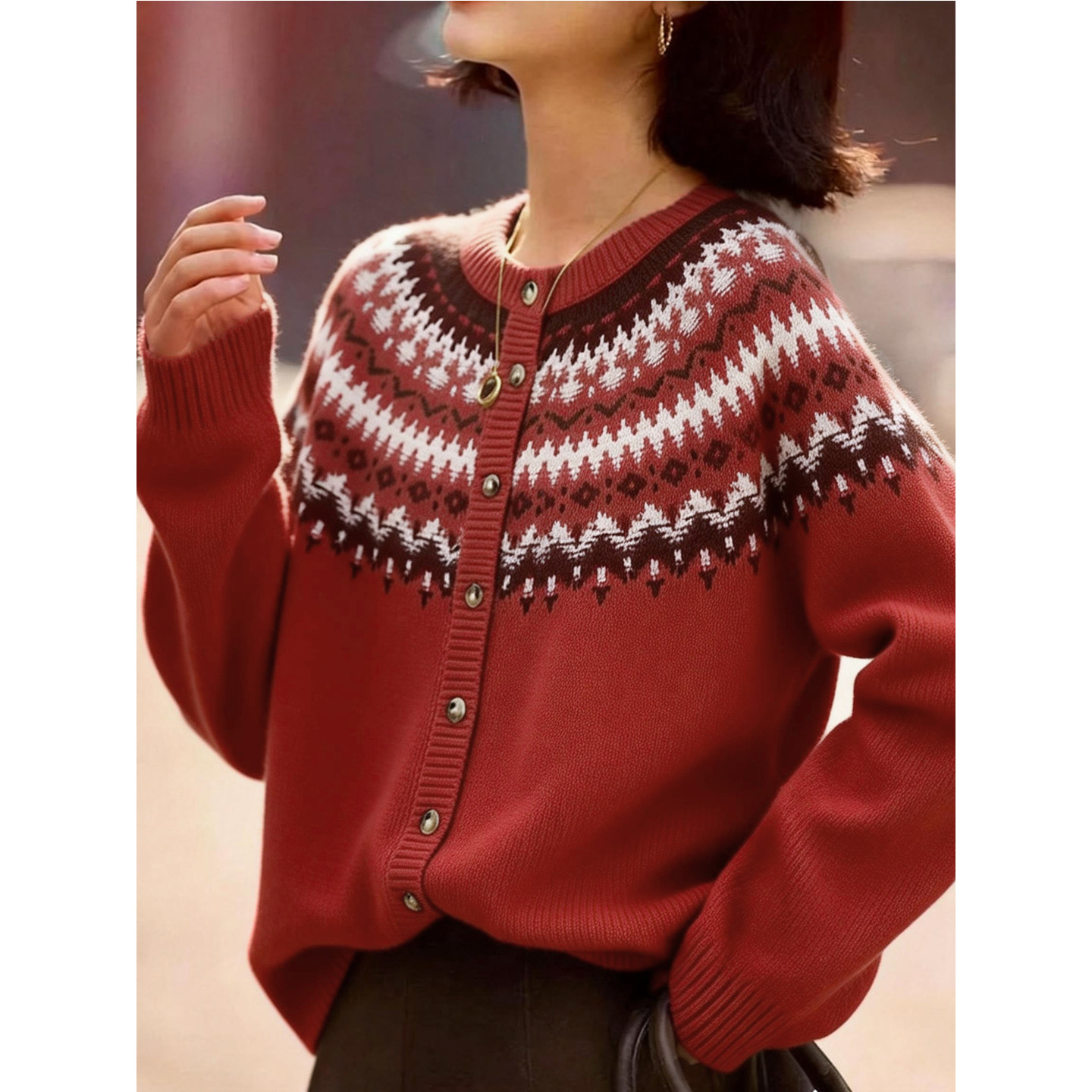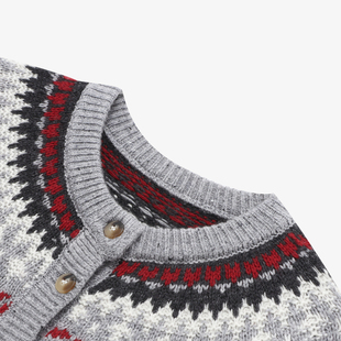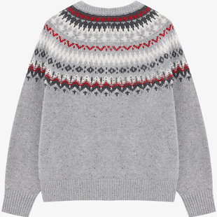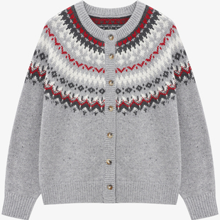 女士慵懒风提花针织开衫 新款 红色毛衣 冬季 百家好费尔岛新年羊毛衫