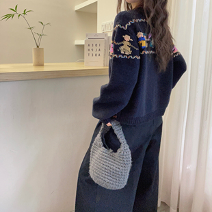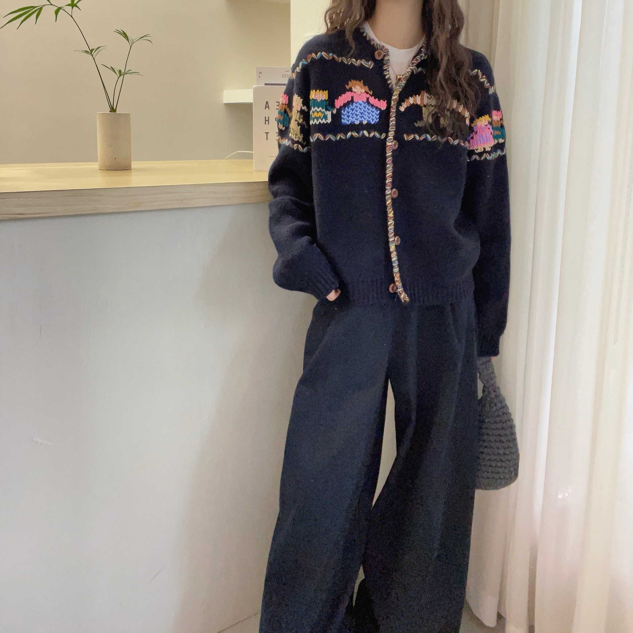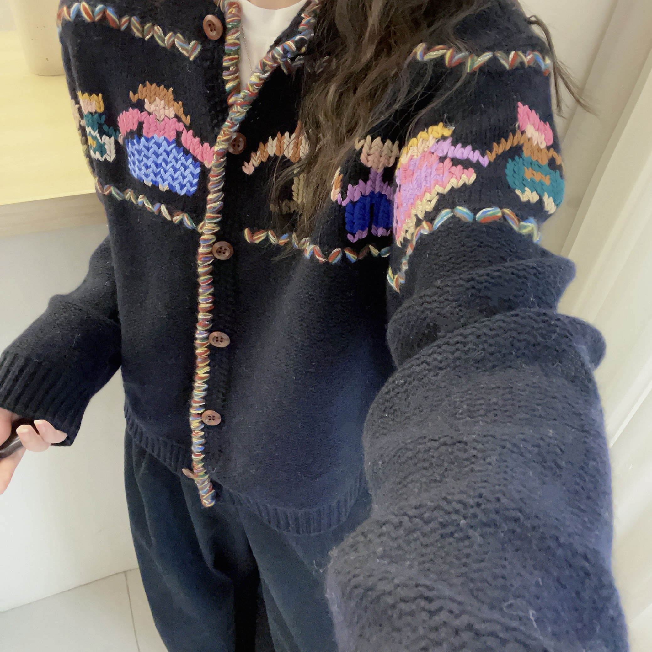 女秋冬毛衣外套 欧货潮刺绣花朵全羊毛针织开衫 欧洲站2025冬装 新款