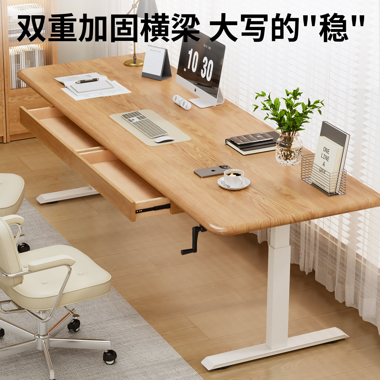 实木电动升降桌电脑桌家用带抽屉书桌学习桌子电竞桌办公桌工作台