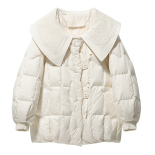 新款 冬季 可爱娃娃领羽绒服胖mm200斤减龄白鸭绒外套 女装 宛宛大码