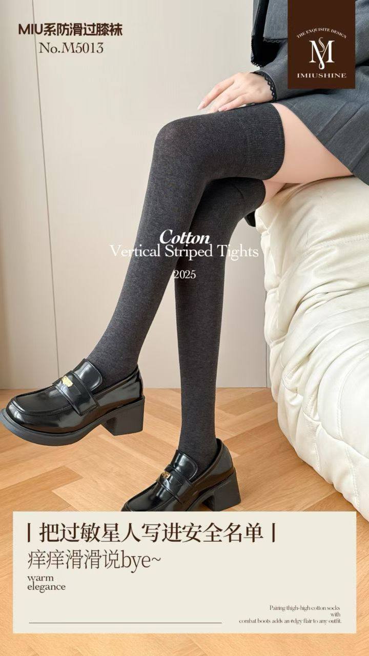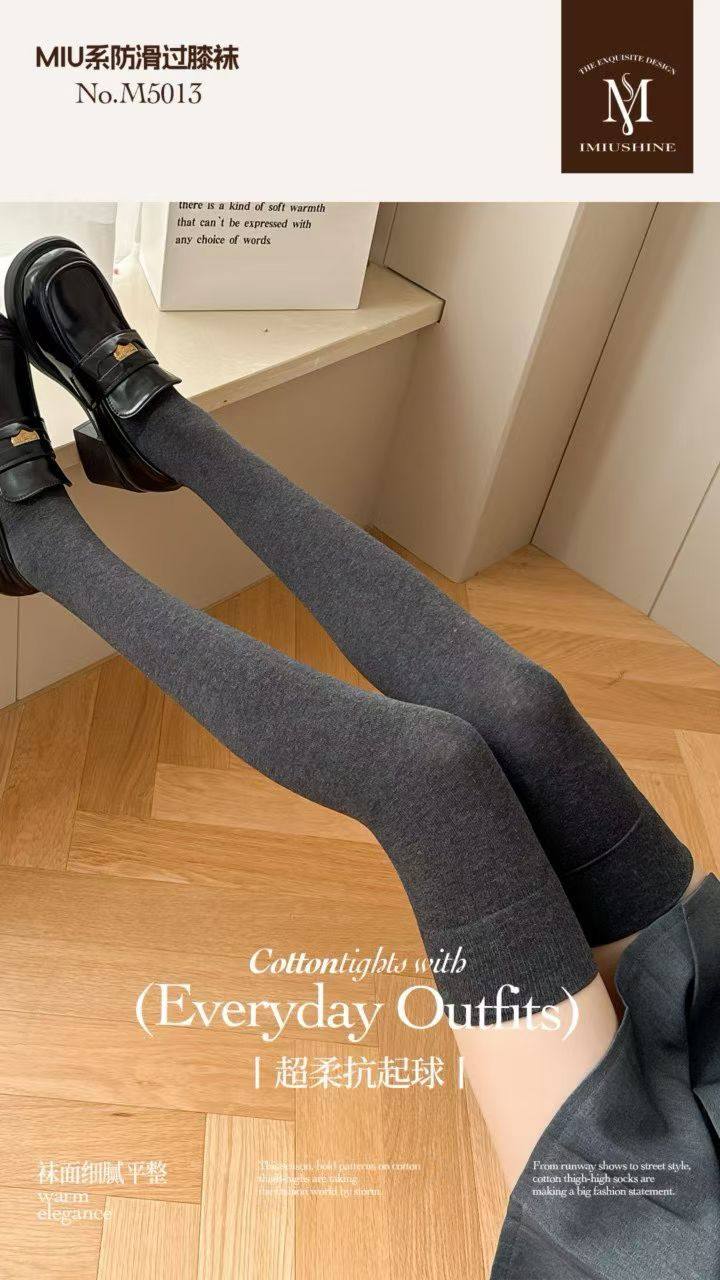 纯棉过膝袜子女长筒春秋冬季 压力高筒袜护膝大腿黑色长袜防下滑 款