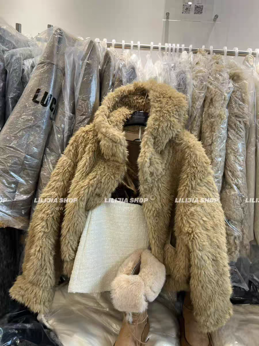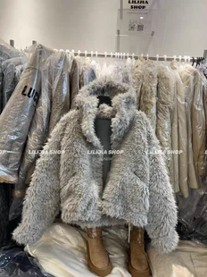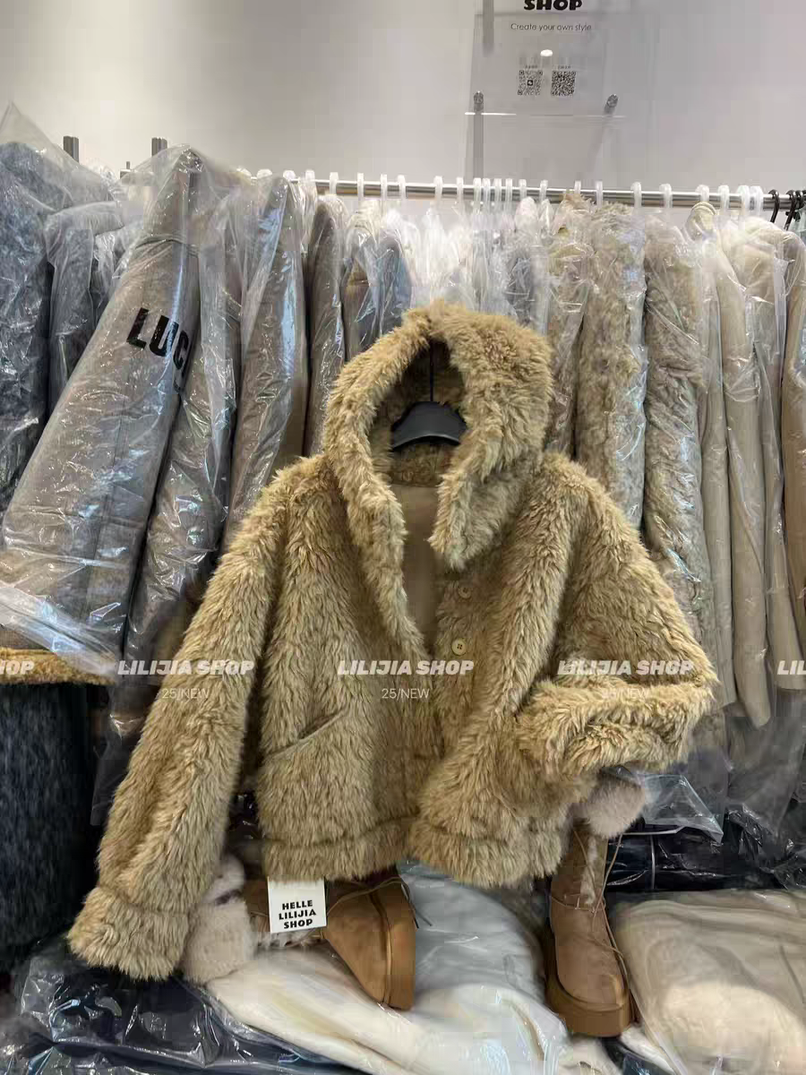 宽松显瘦百搭连帽毛毛外套女皮毛一体上衣 韩版 MH家 2025冬新款