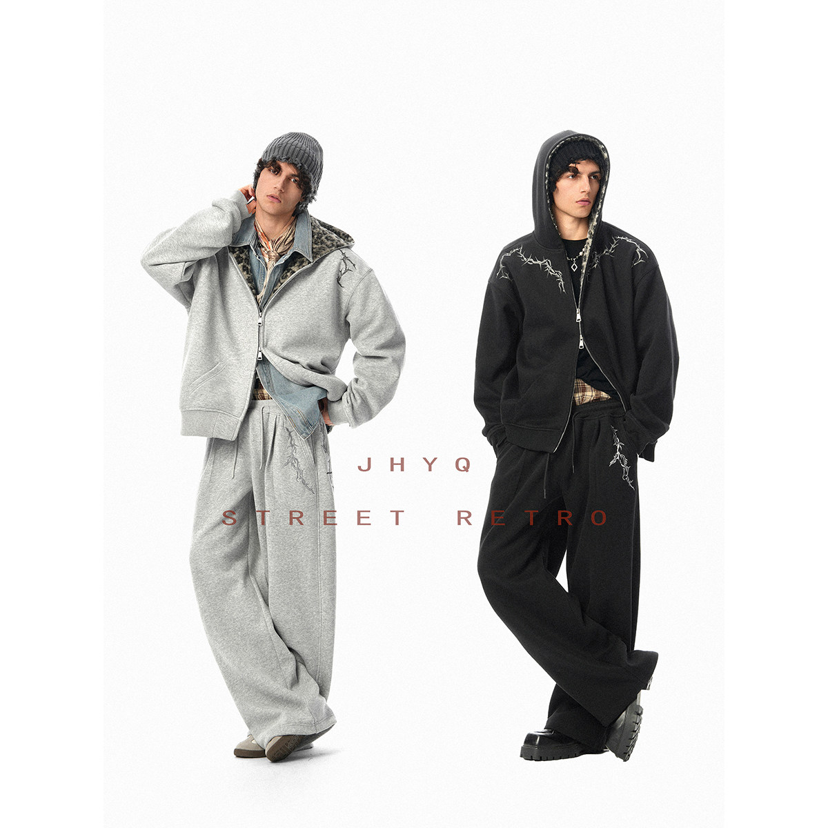 荆棘系列 男抽绳束脚 JHYQ净化眼球加绒重磅400G直筒宽松运动卫裤