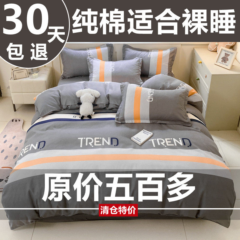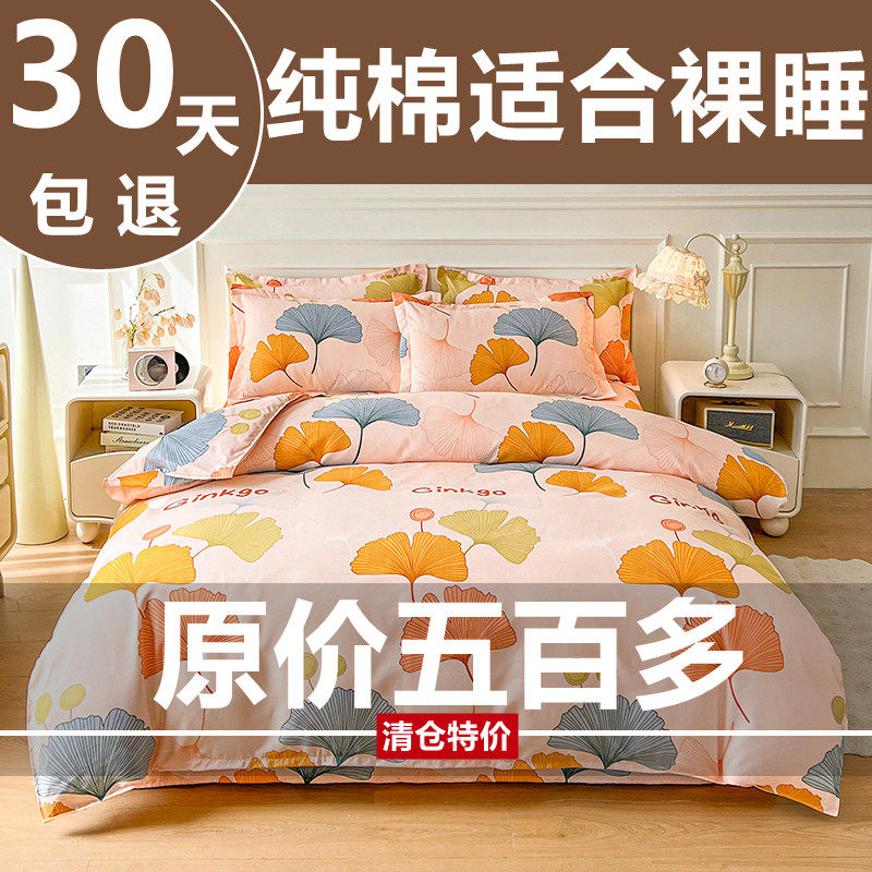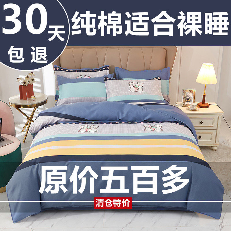 亚朵酒店裸棉床上四件套60支被套80支全棉纯棉床单枕头套单件