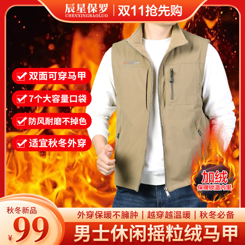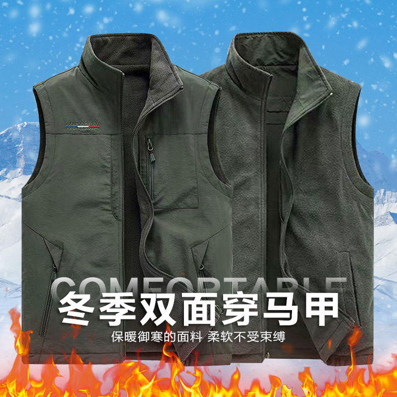 冬季 休闲马夹外套t1 加绒加厚马甲摇粒绒多口袋运动户外钓鱼工装