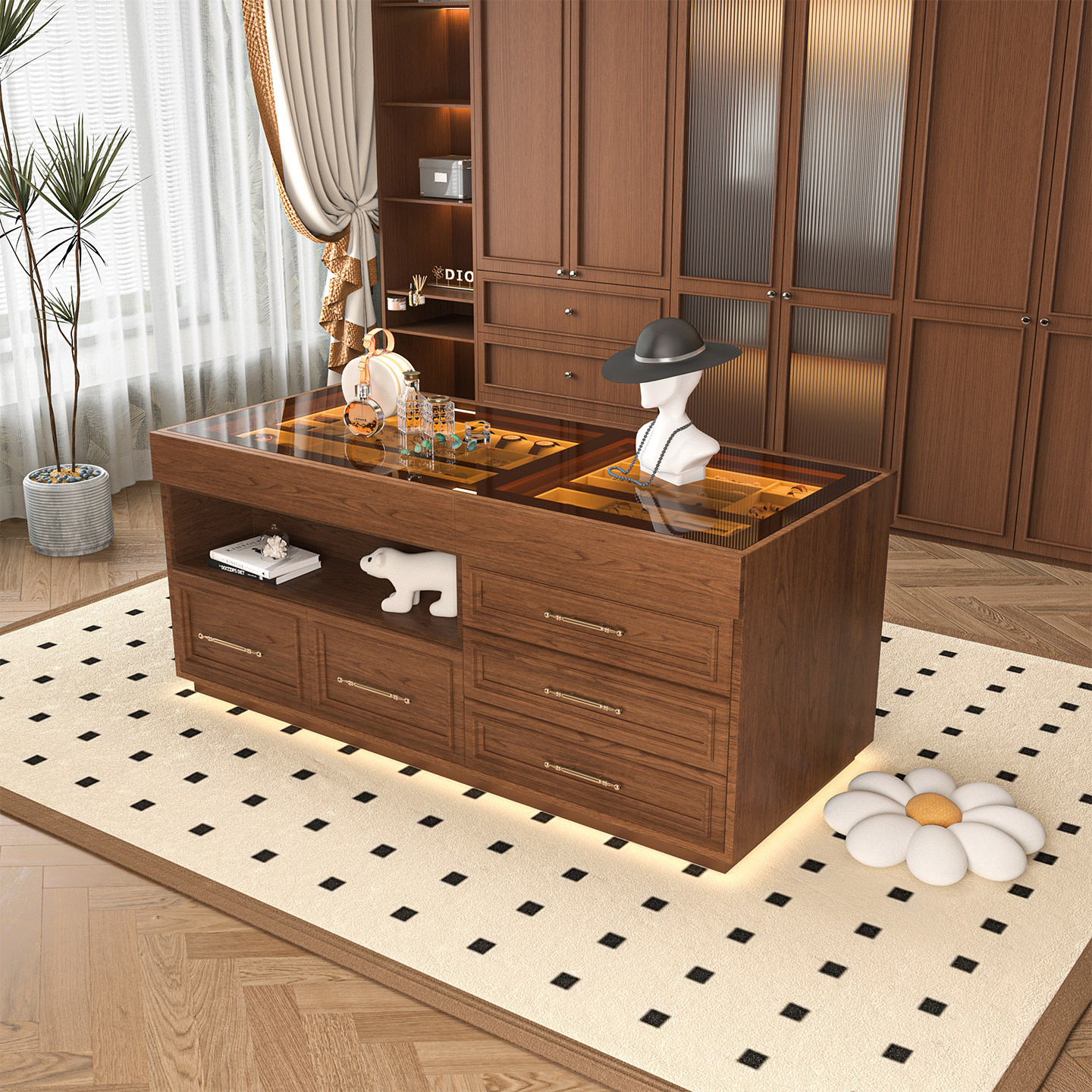 全友家居卧室靠墙收纳储物斗柜梳妆台一体床尾抽屉置物柜子化妆桌