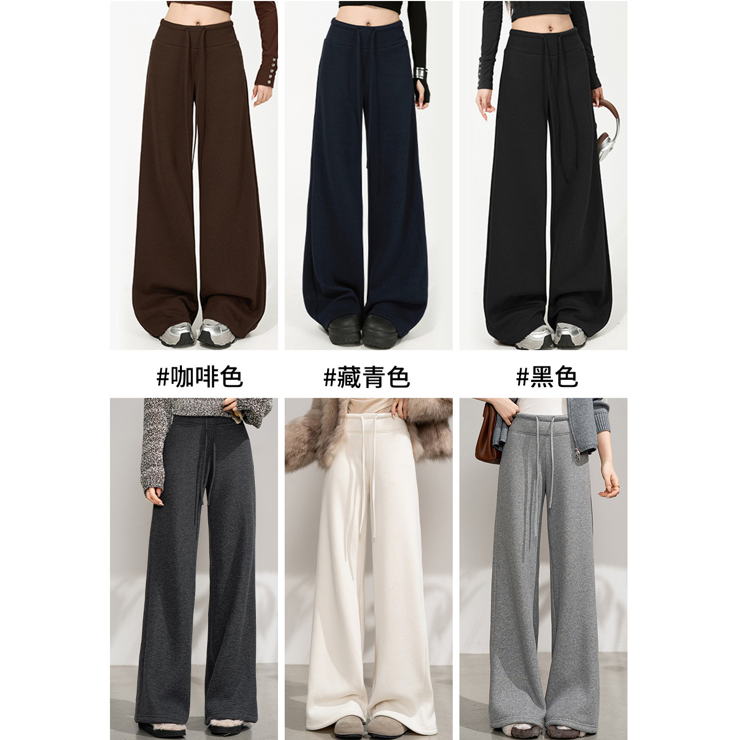 女加绒冬季 直筒运动卫裤 微喇阔腿裤 窄版 2025新款 白色垂感糯米裤