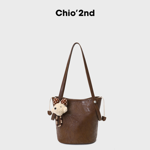南风Chio2nd 高级通勤手提单肩斜挎包 戴妃暖咖水桶包包女2025新款