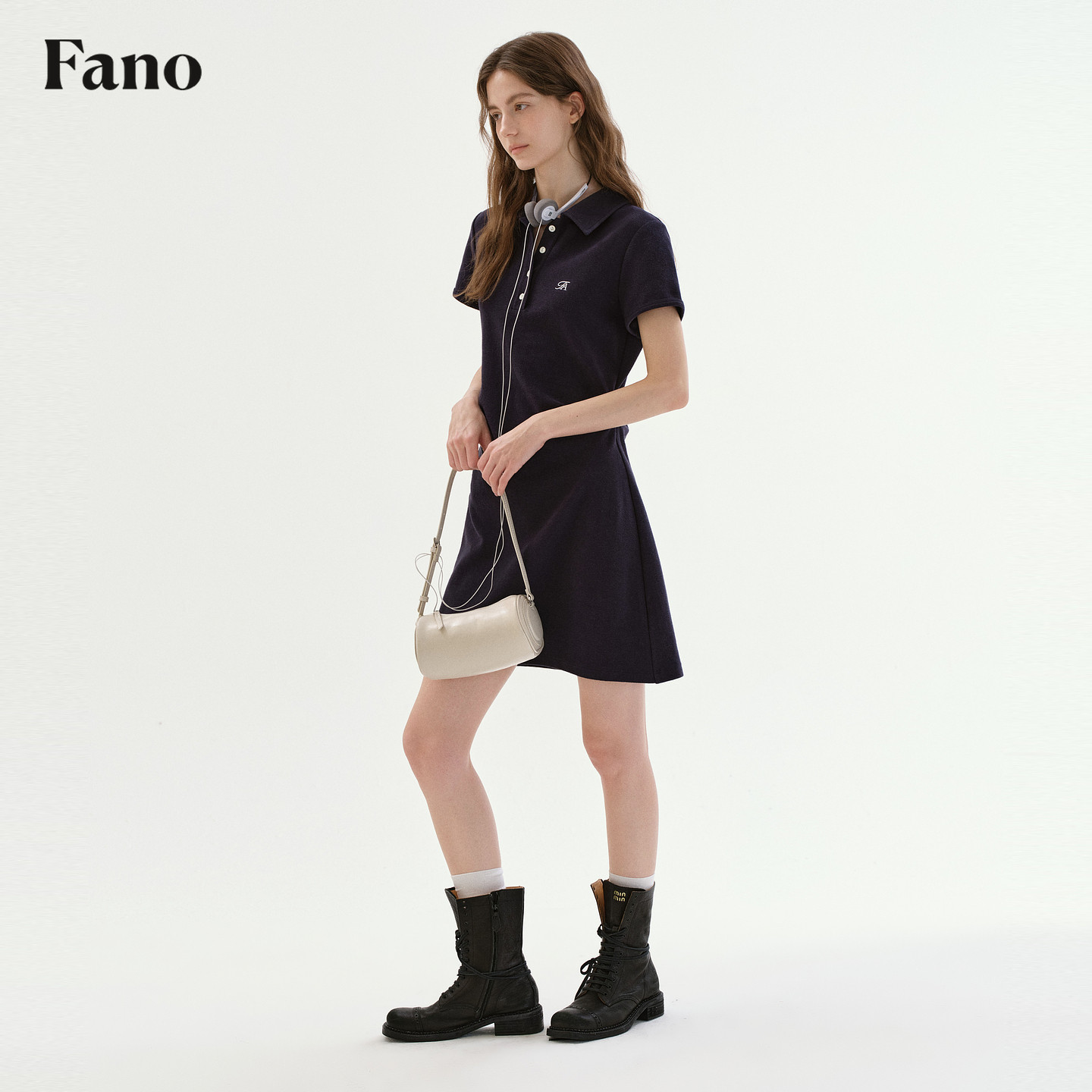 通勤短袖 新款 A字裙 韩系休闲风Polo领连衣裙女2026春季 范洛Fano