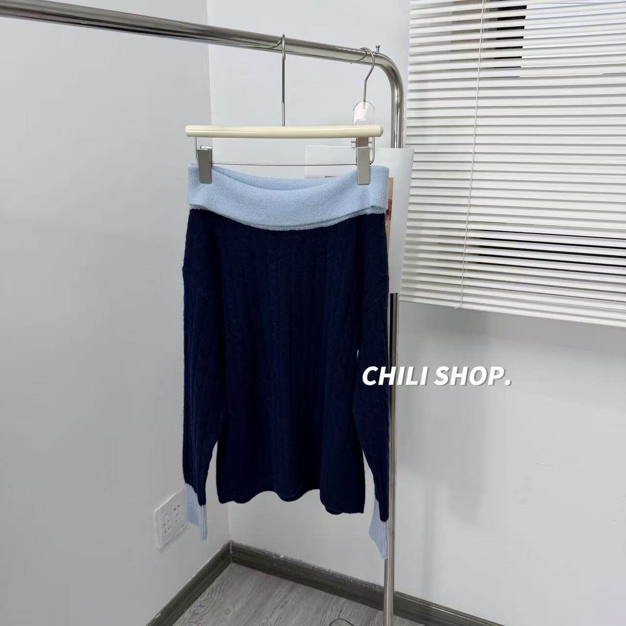 03.02 撞色一字肩麻花温柔10羊绒90羊毛针织毛衣 英英Chili