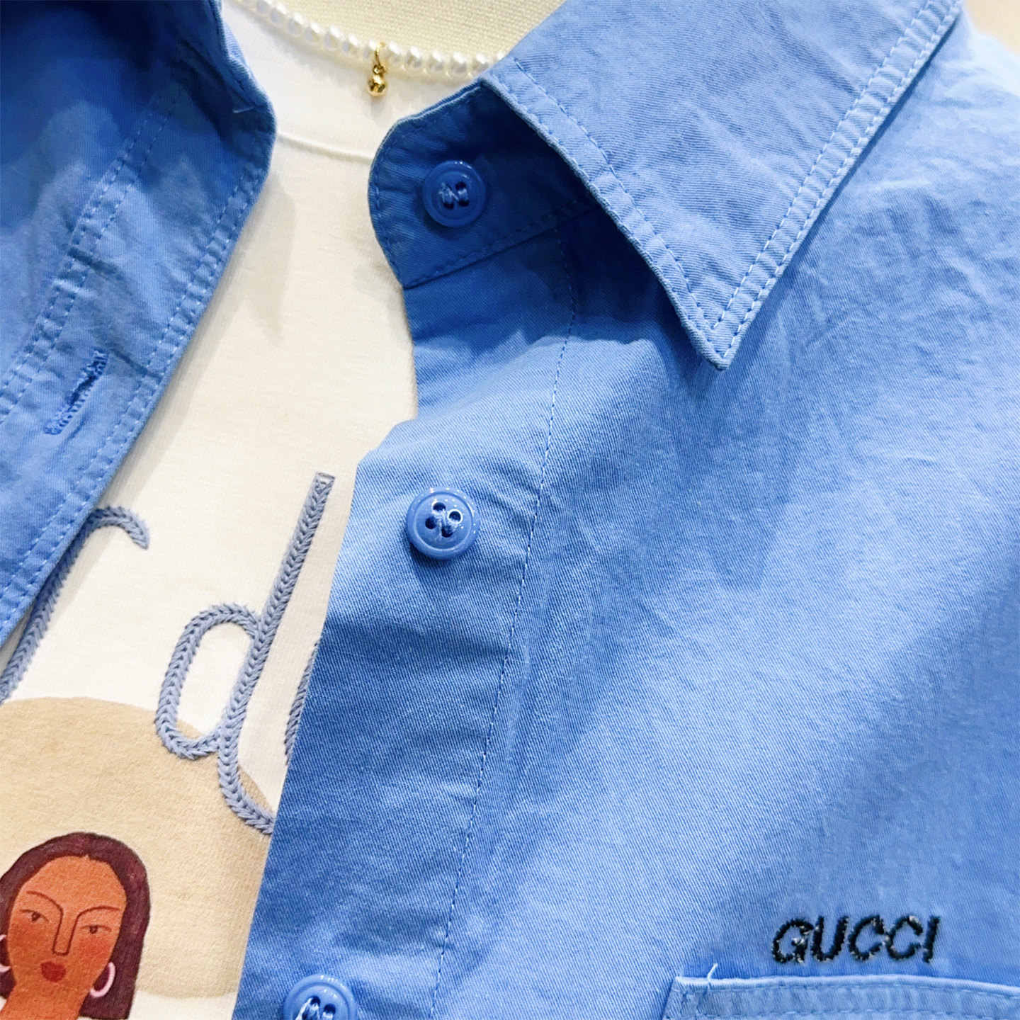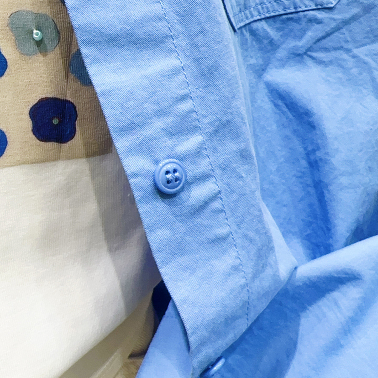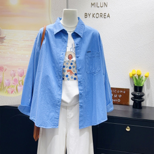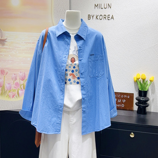 宽松开衫 韩国蓝色100%棉衬衣长袖 高级感外套 博主推荐 2026春时尚