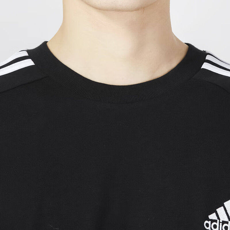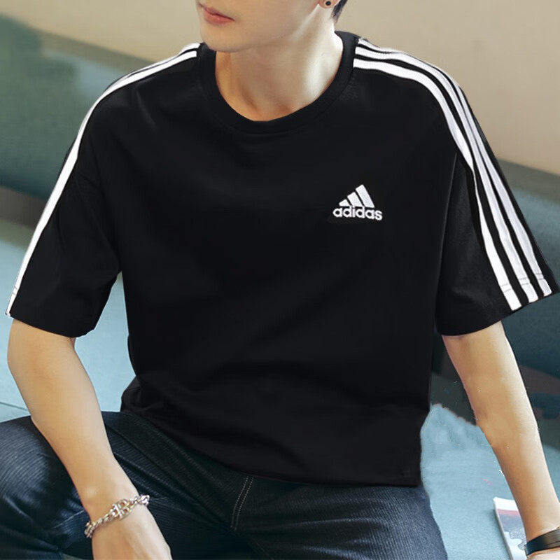 黑白色t恤重磅运动上衣 纯棉简约半袖 阿迪达斯宽松休闲短袖 男夏季