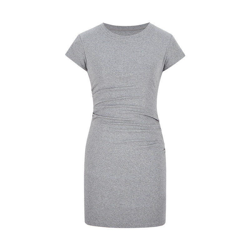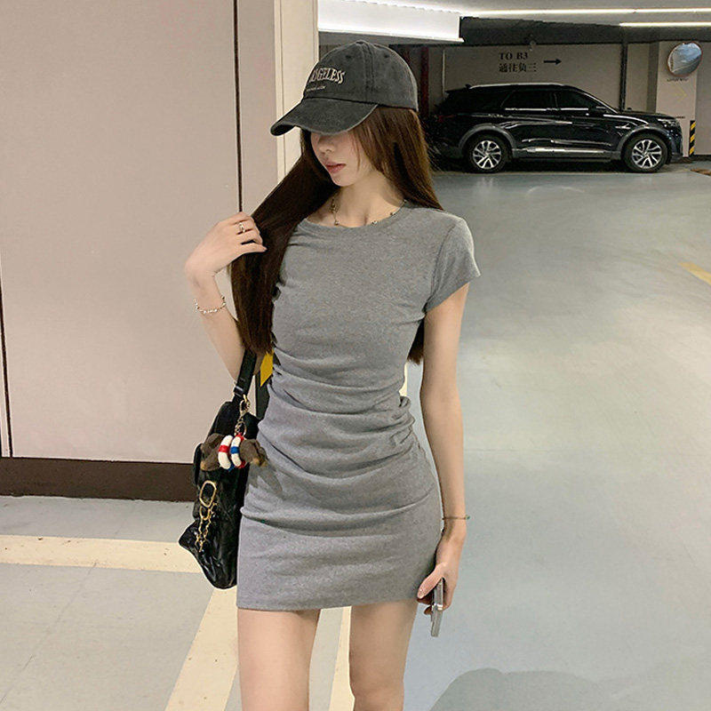 MosesQueen魔西女王灰色短袖 显瘦圆领辣妹包臀短裙 连衣裙收腰修身