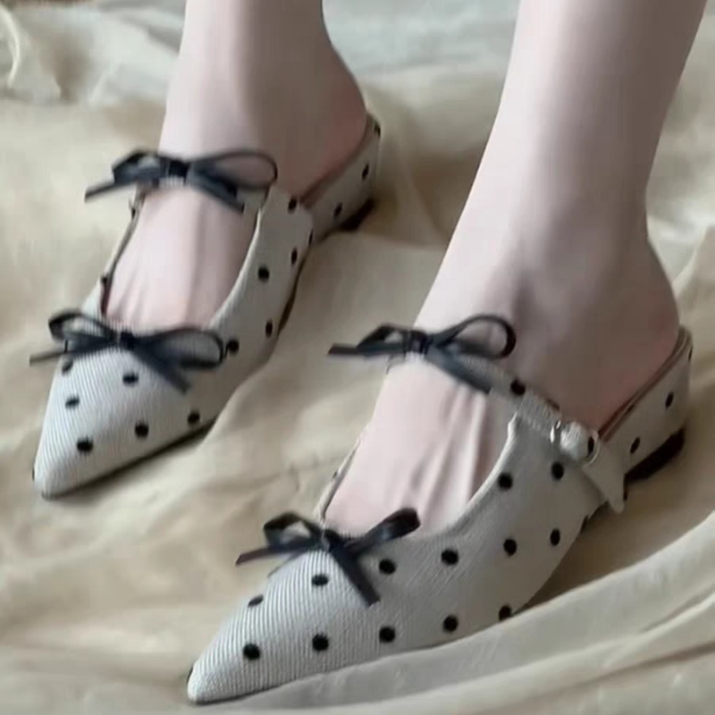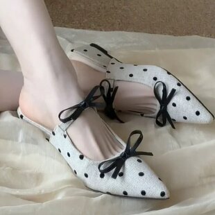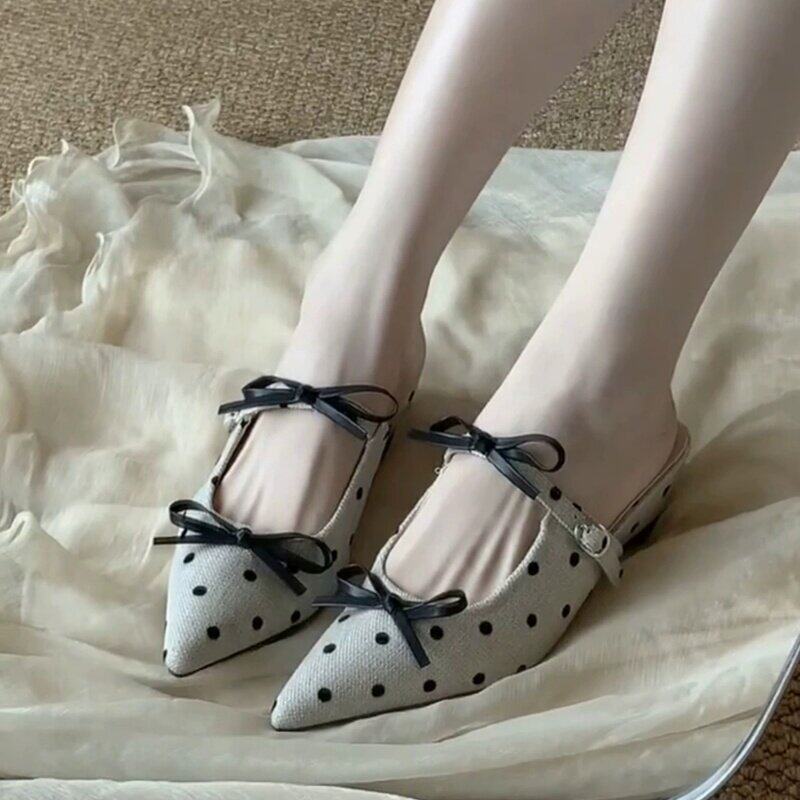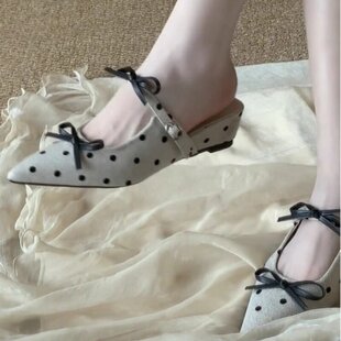 温柔蝴蝶结波点包头半拖女夏外穿2026新款 坡跟尖头玛丽珍舒适凉鞋