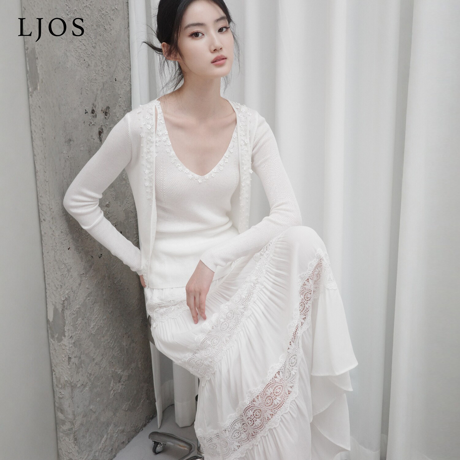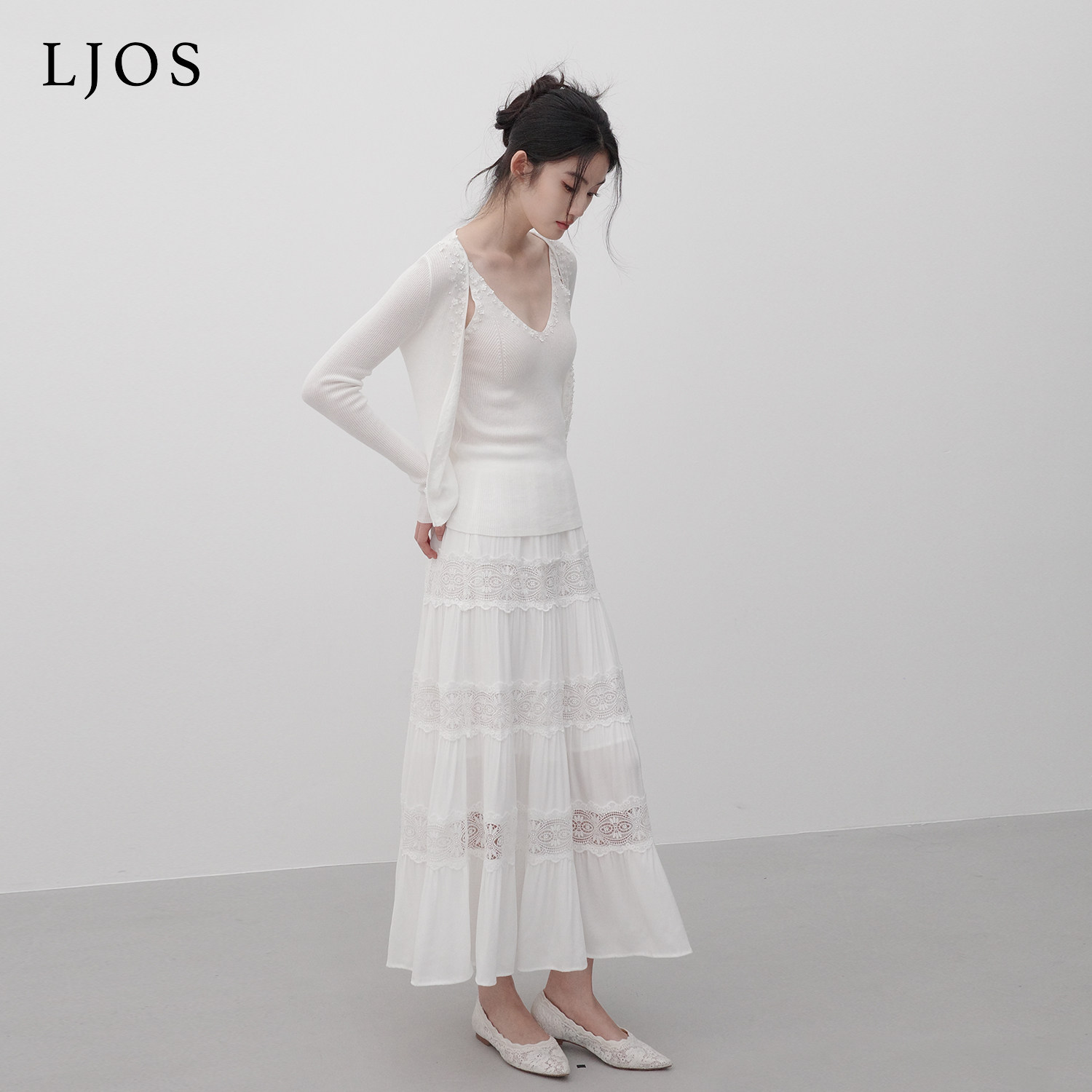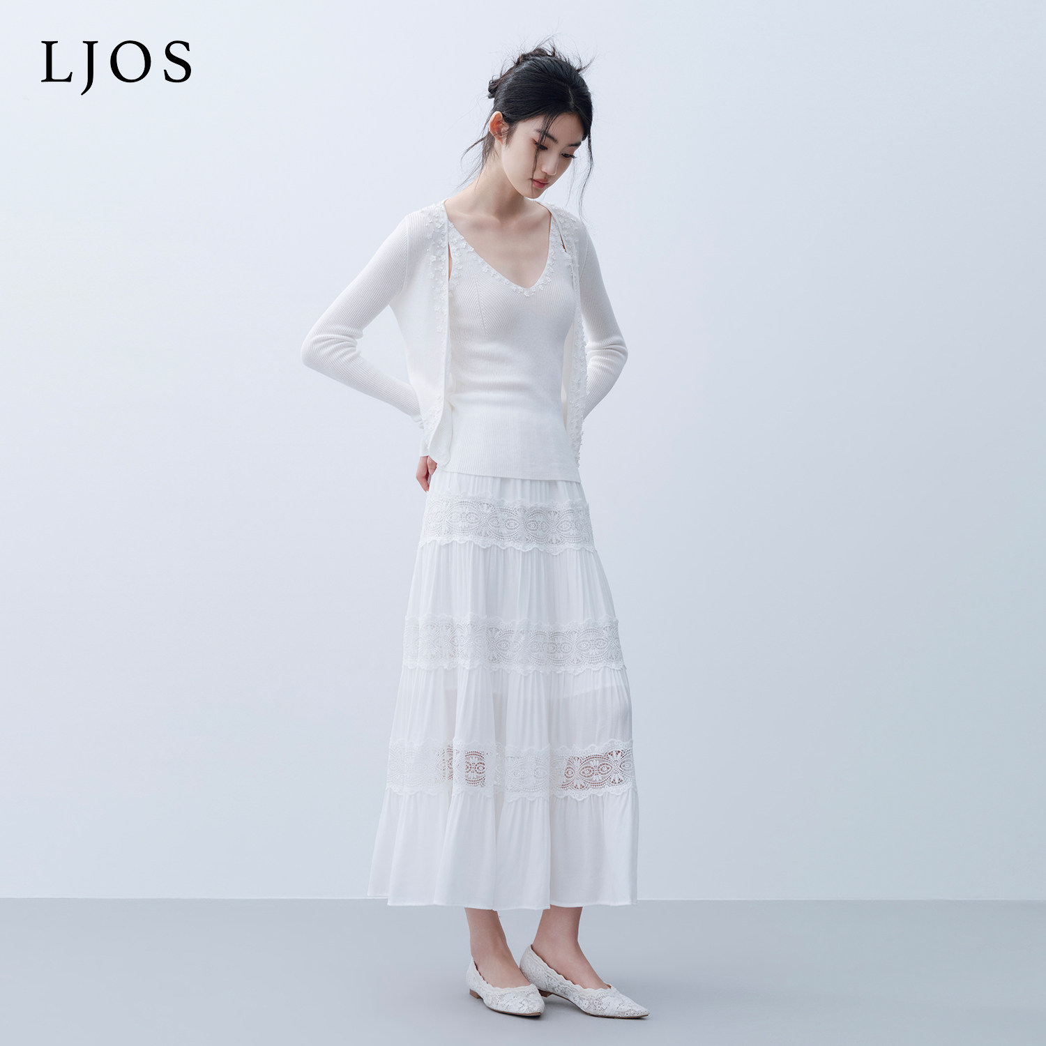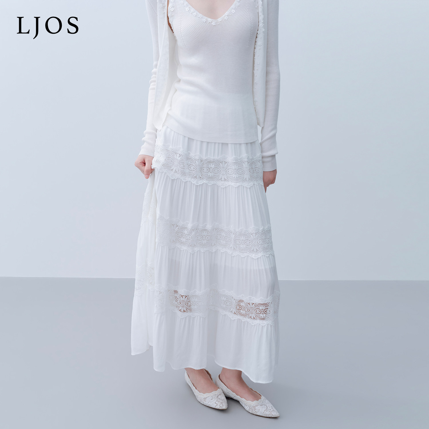 白色半裙简约优雅 蕾丝拼接半身裙2026早春新品 LJOS 瓷白色法式