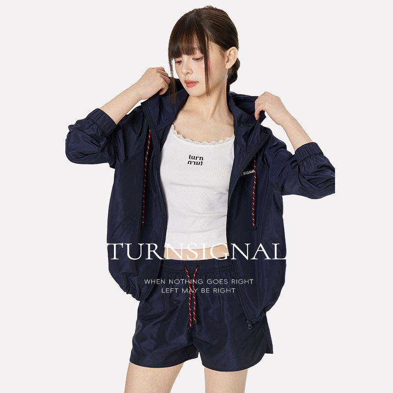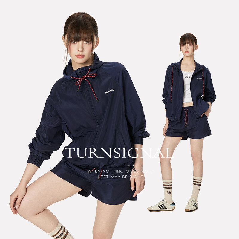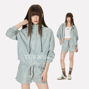 休闲运动两件套夏 女2026新款 TurnSignal潮牌防晒连帽外套短裤 套装
