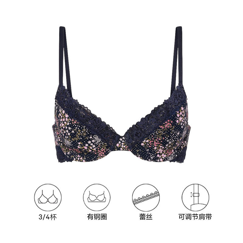 聚拢文胸内衣女2026春 花漾蕾丝饰边舒适薄款 直降128 维密PINK