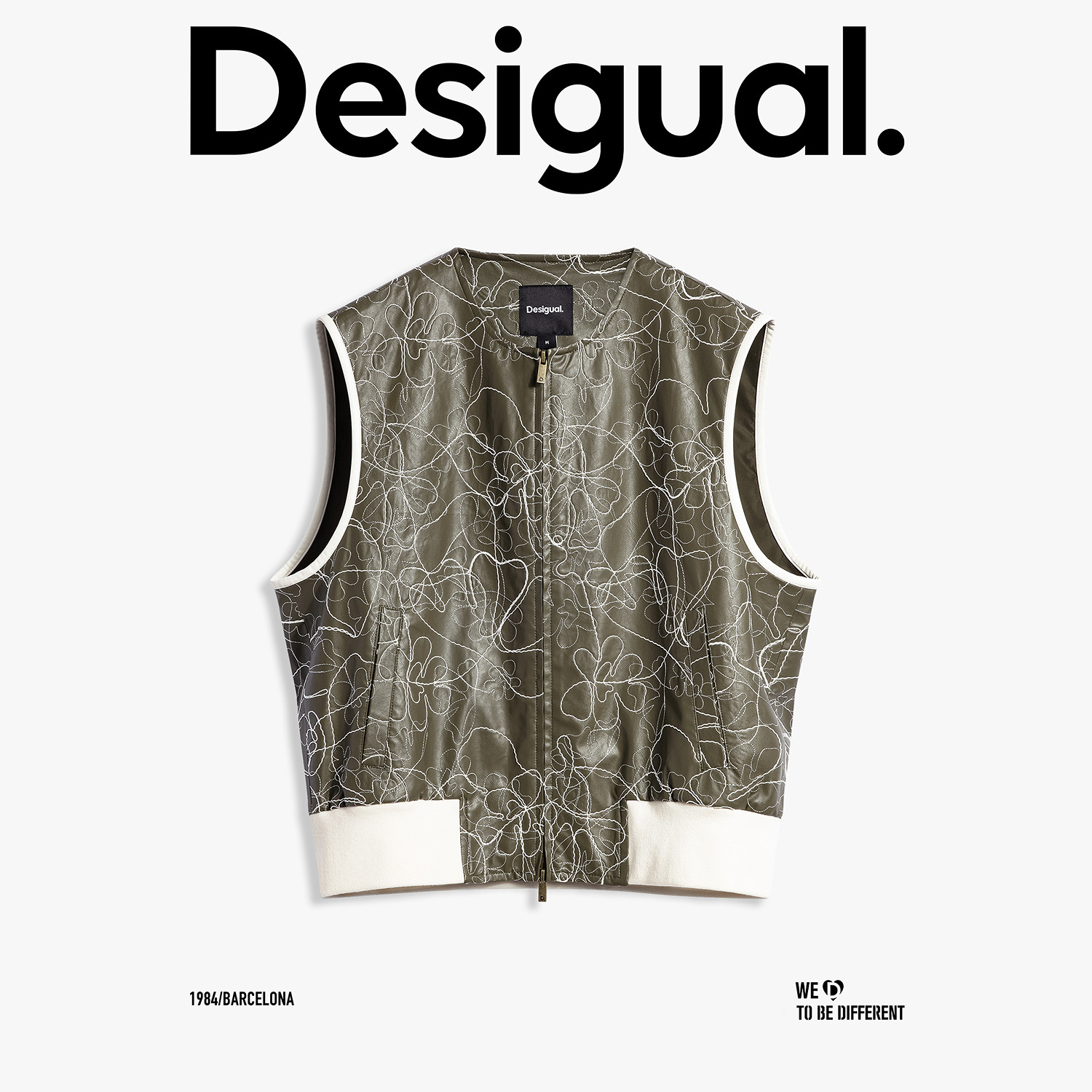 外套 女式 Desigual26春夏新品 宽松仿皮刺绣马甲无袖