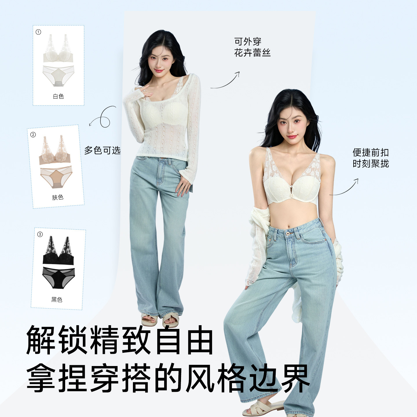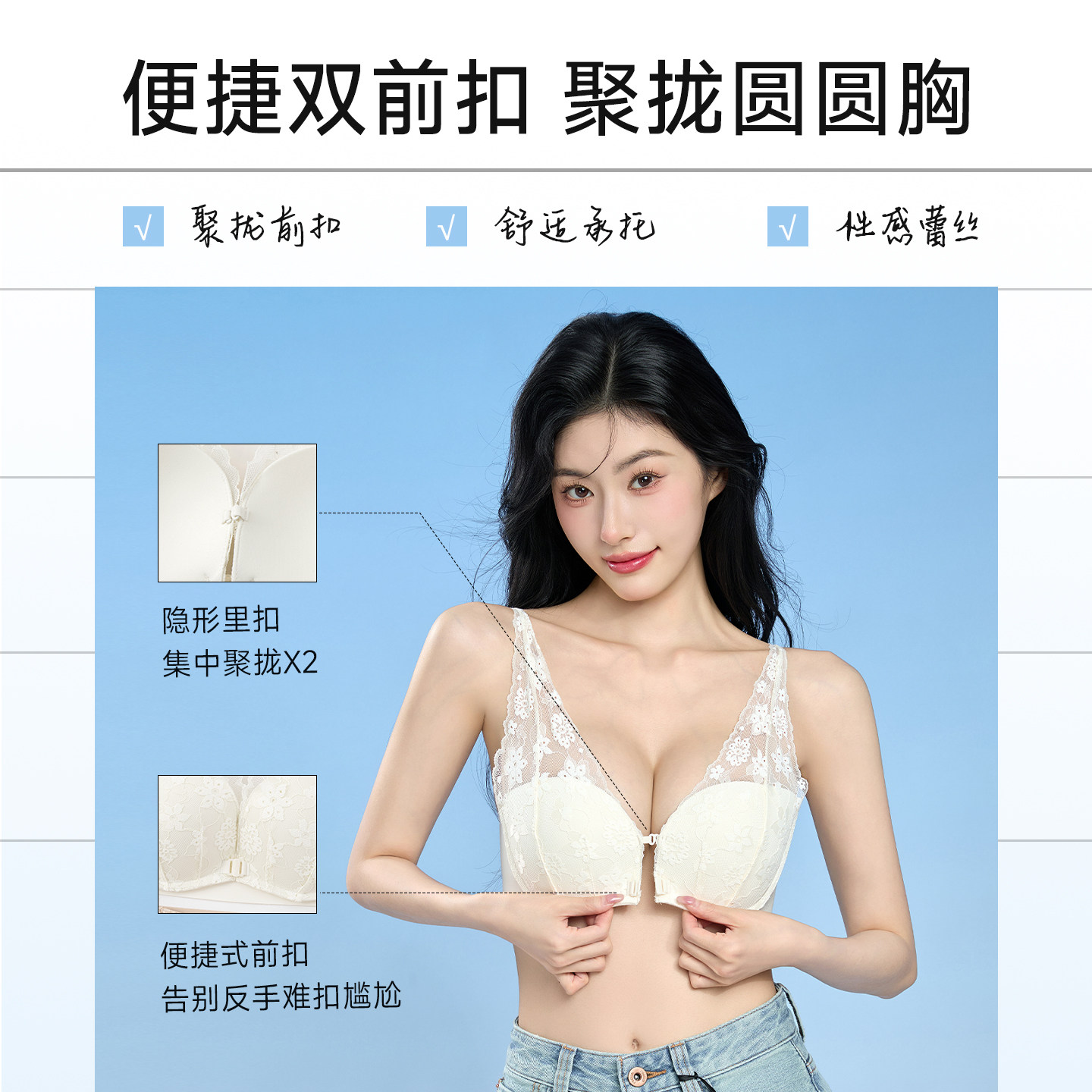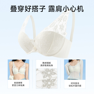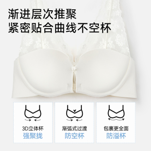 法式 性感纯欲蕾丝内衣女小胸聚拢显大收副乳防下垂双前扣文胸套装
