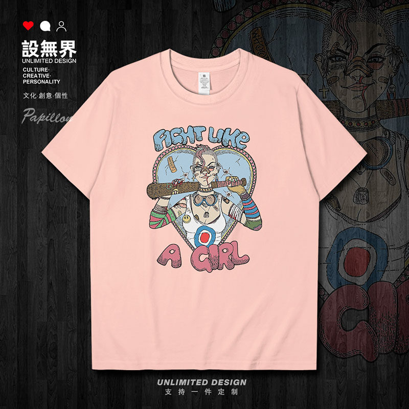 欧美潮流印花不良少女摇滚朋克纯棉宽松短袖 无界 T恤男女夏0002设