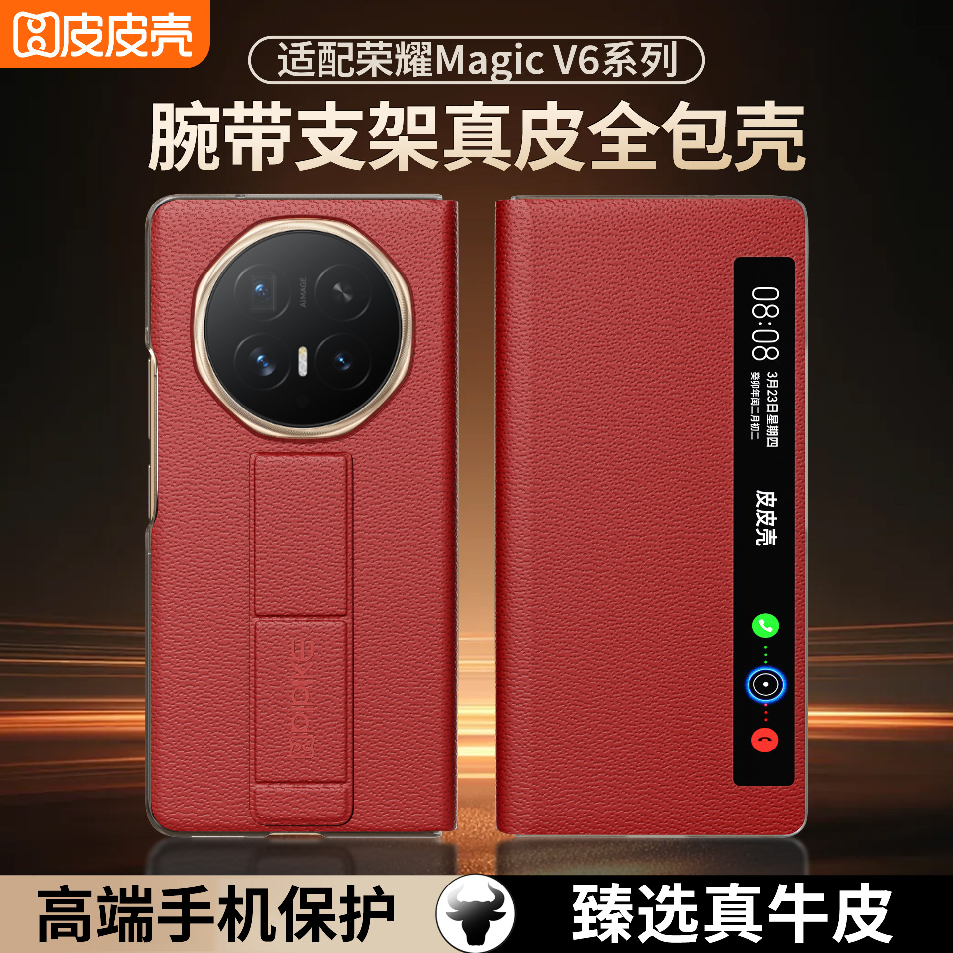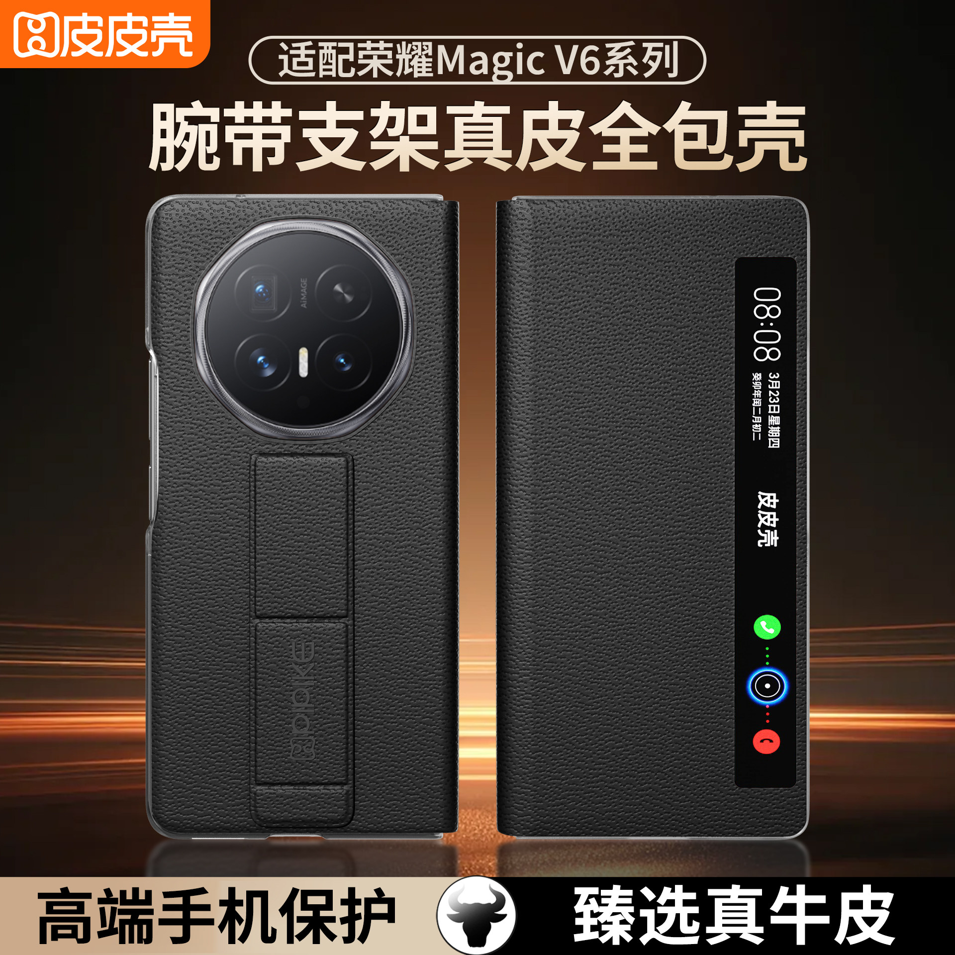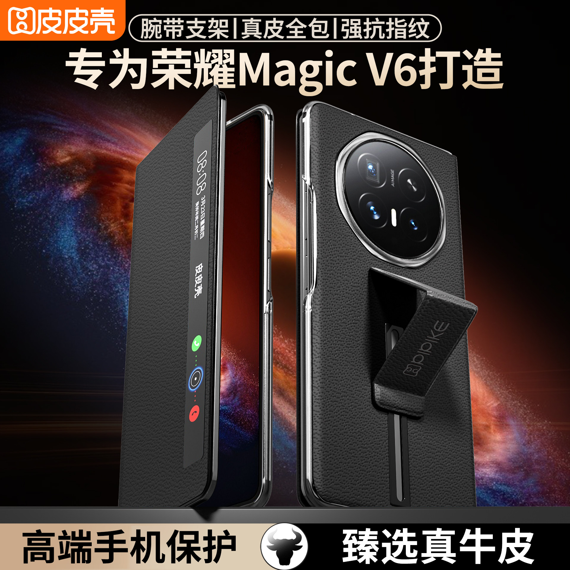 真皮超薄防摔v6磁吸翻盖magicv6保护套智能视窗v5外壳男女商务 皮皮壳适用荣耀MagicV6手机壳新款 官方正品
