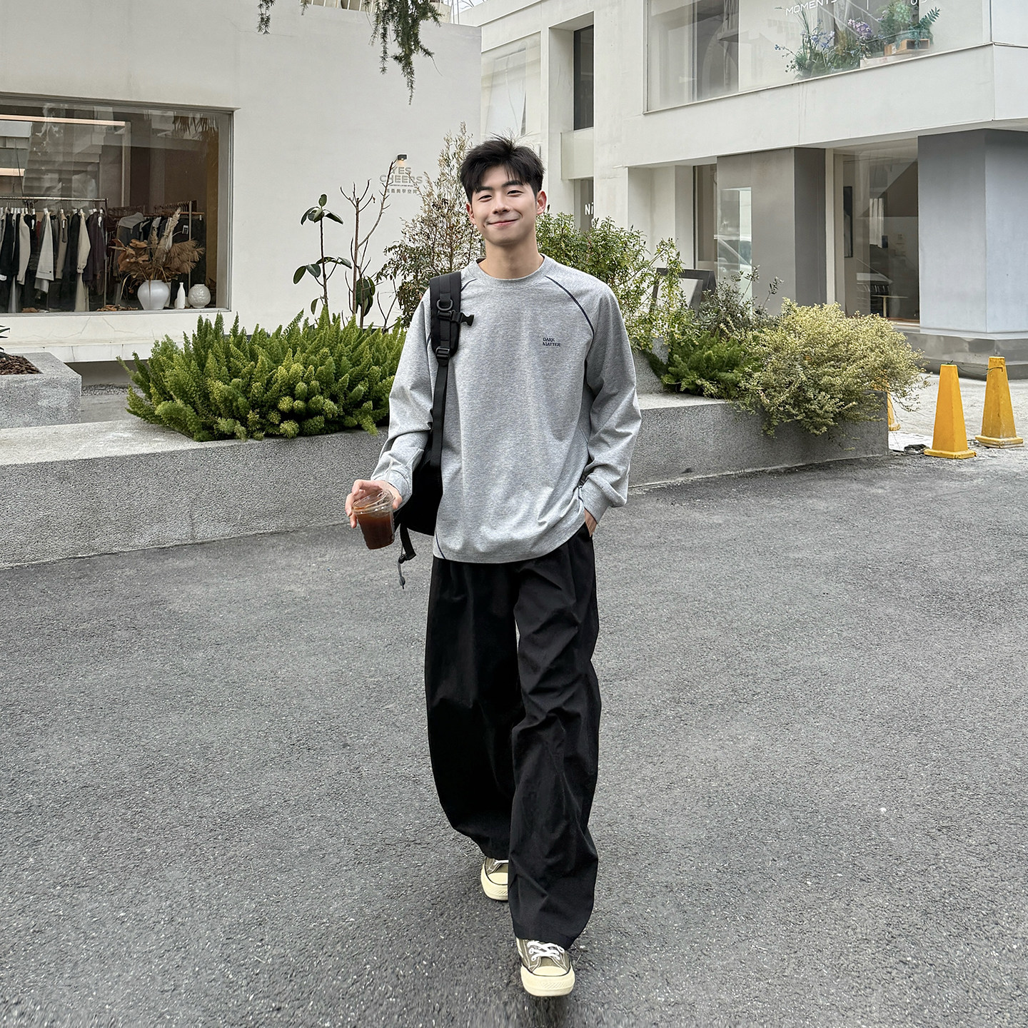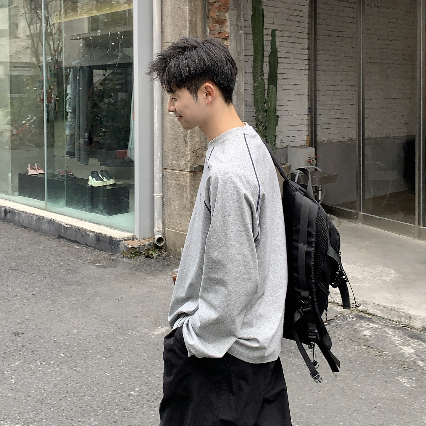T恤男生宽松弹力运动上衣 250g明辑线印花圆领长袖 凉感索罗娜