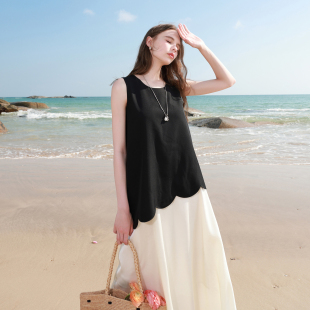 三彩2026春季 圆领背心裙假两件拼接A字裙连衣裙简约长裙M 新款