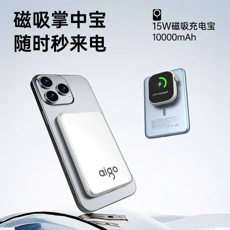 爱国者无线磁吸充电宝轻薄便携10000毫安大容量快充移动电源可上飞机适用苹果17 充电宝3C认证可上飞机