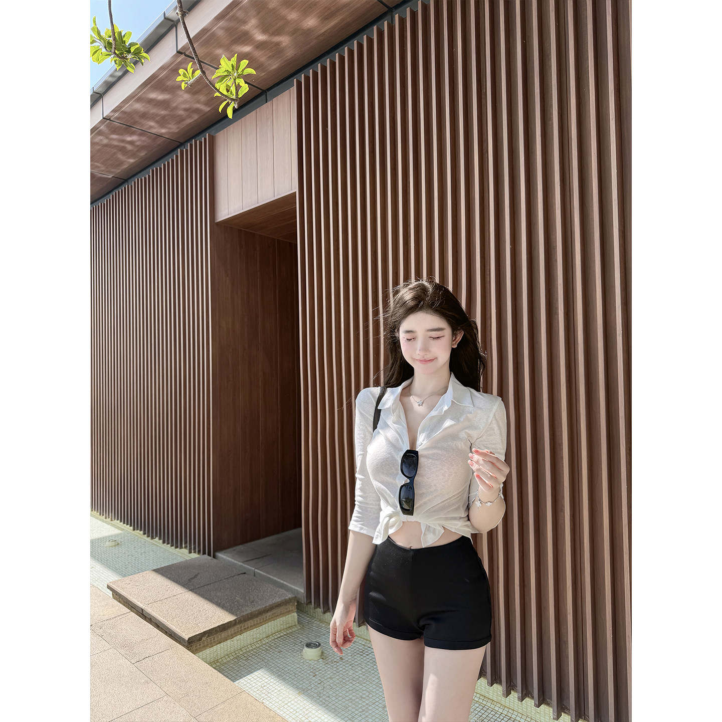 衬衫 70雪花棉微透中袖 纯欲气质性感上衣女衬衣 白女松弛 若语定制