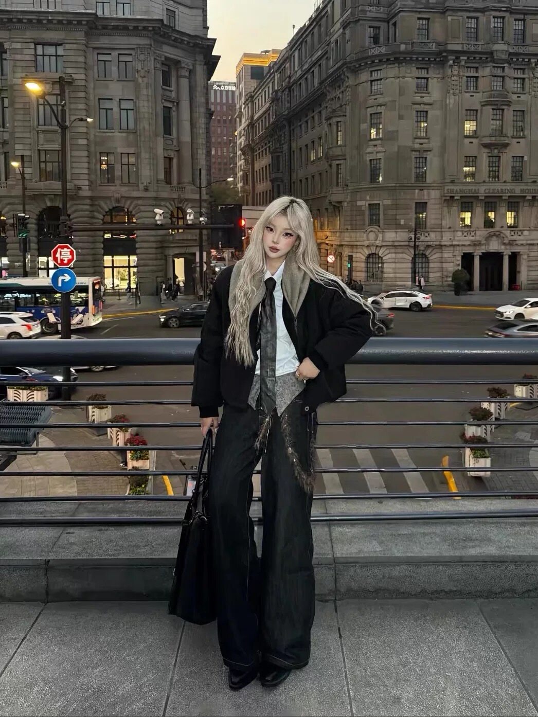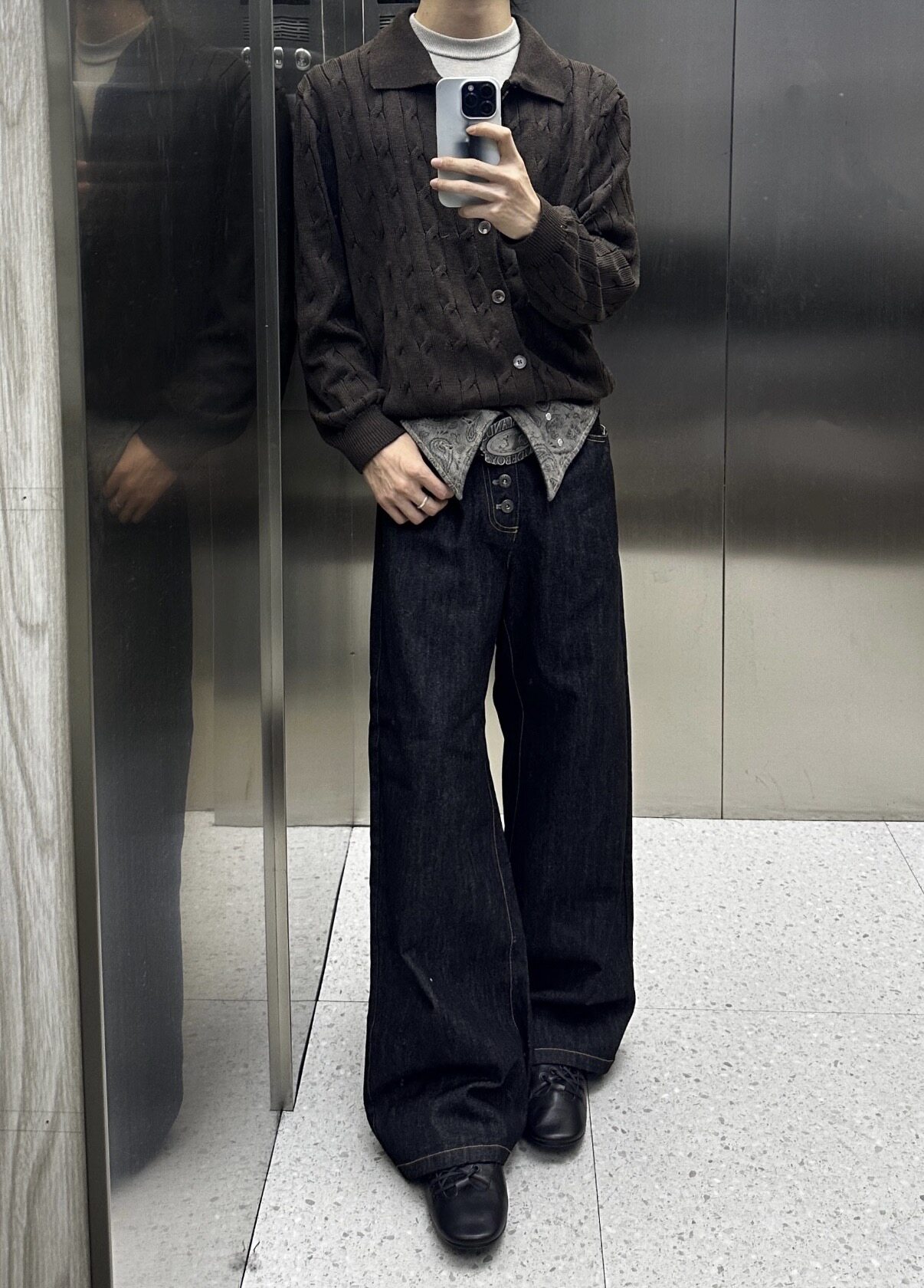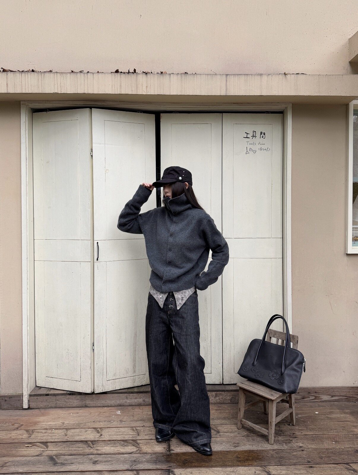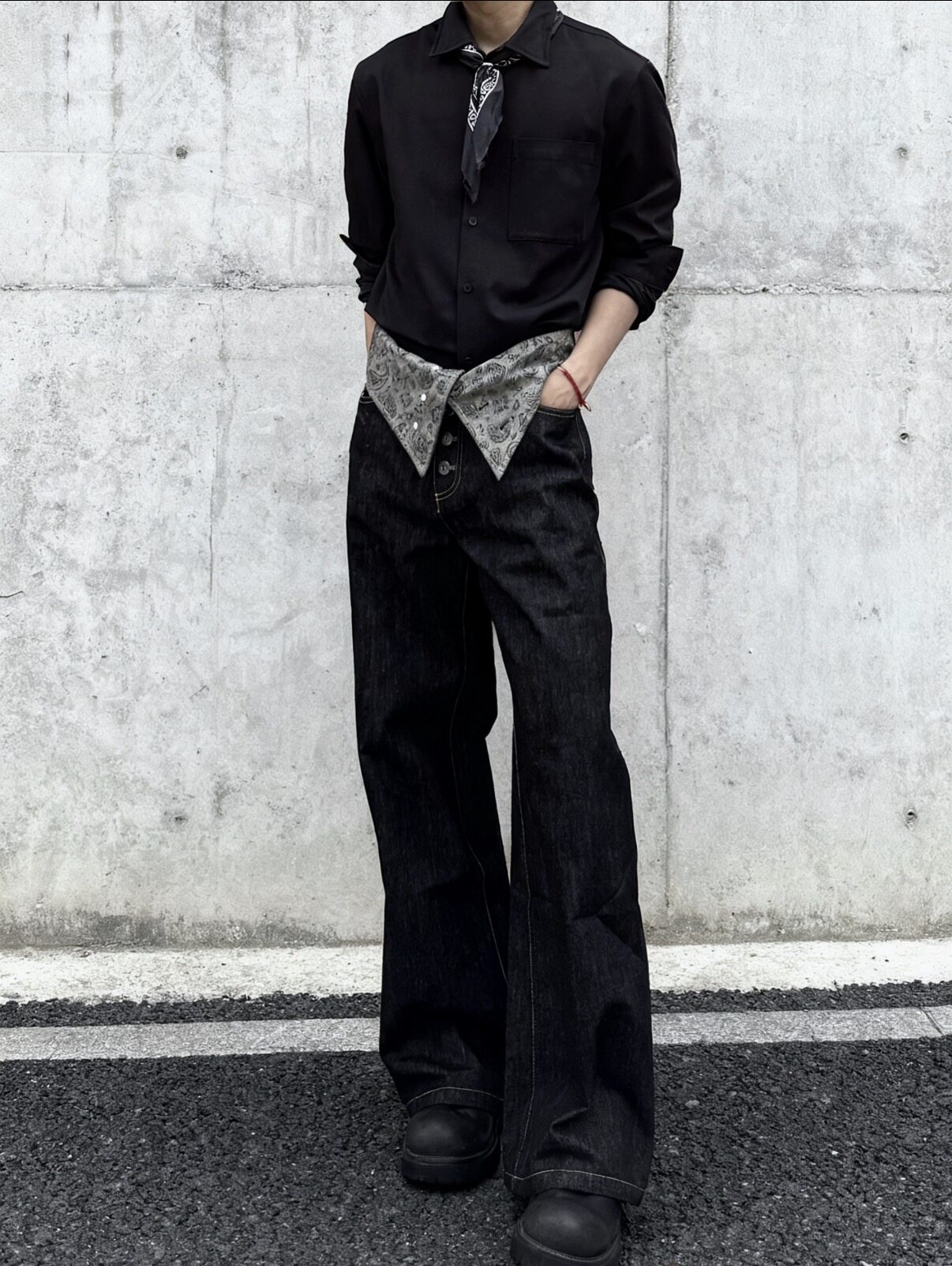 ONEER黑色腰果花复古脱浆原牛宽松阔腿直筒A字版 通勤 型牛仔裤