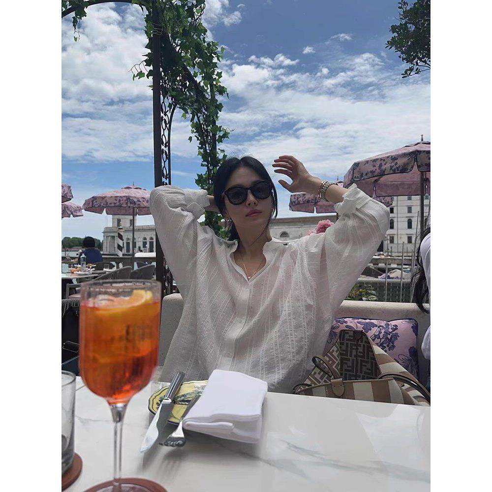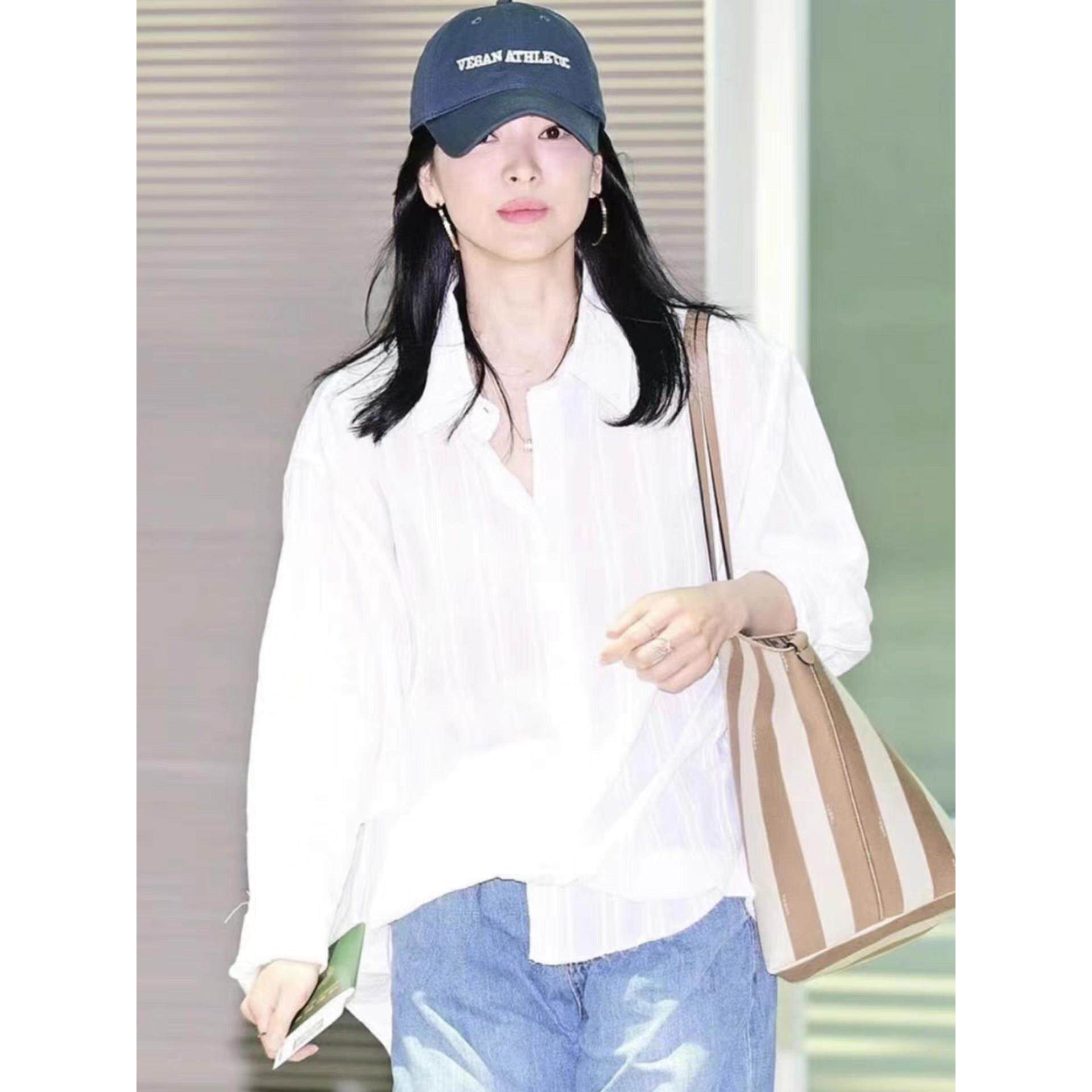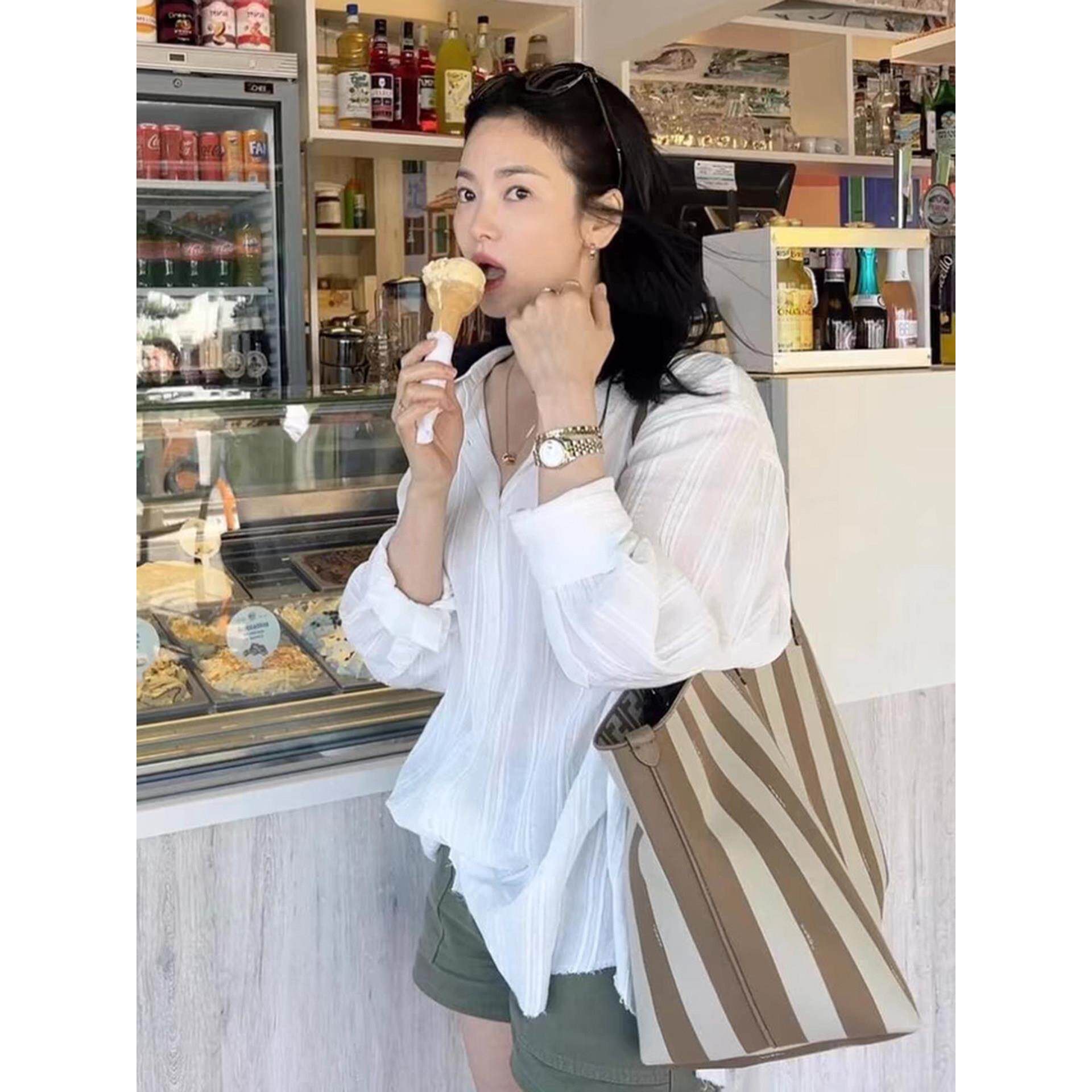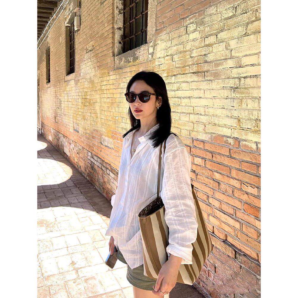 纯色显瘦条纹感长袖 女宋慧乔同款 防晒衬衣 moia衬衫 吴小姐韩代正品