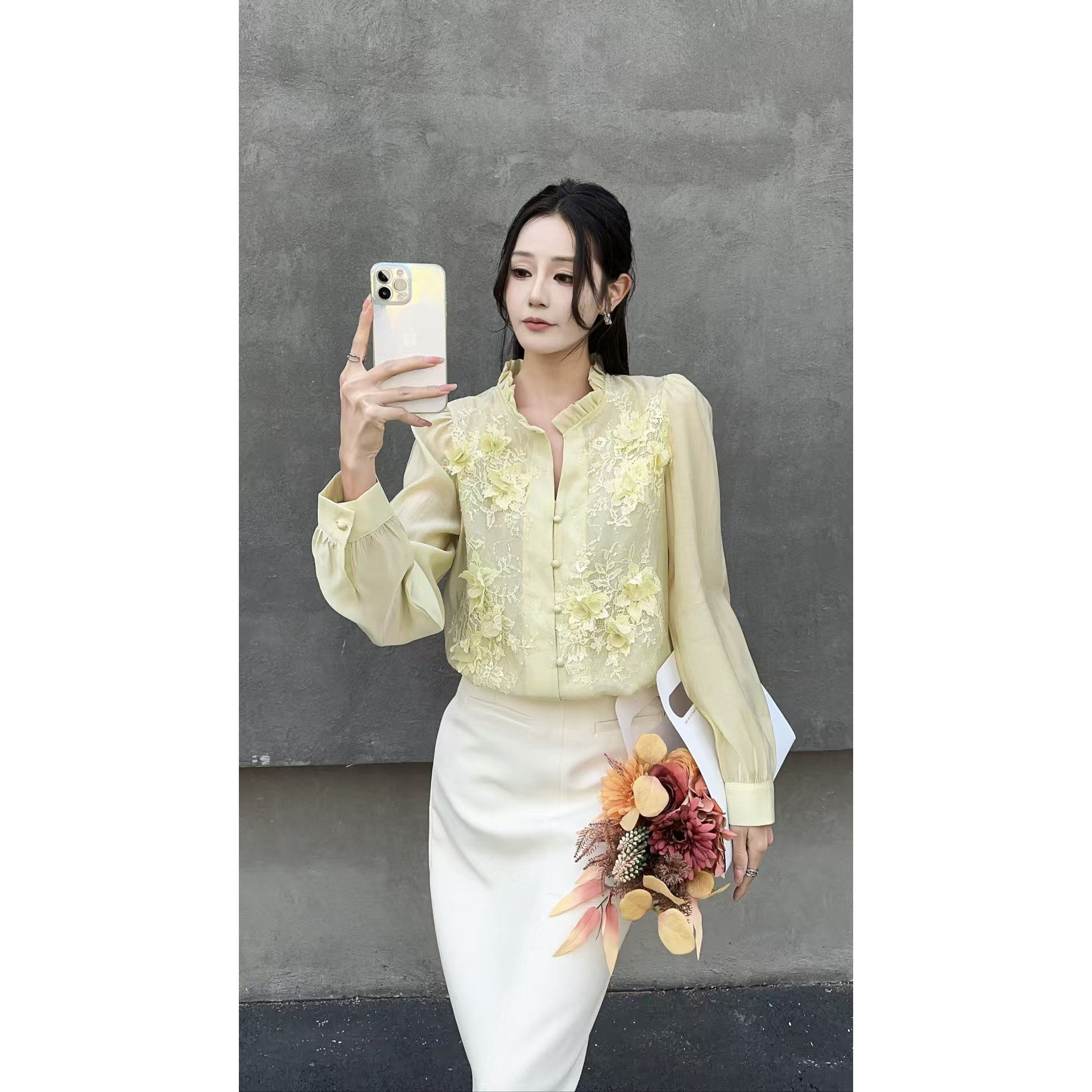 重工洋气花朵气质衬衫 3.12姗姗推荐 韩式 新款 3065 广州欧货春季