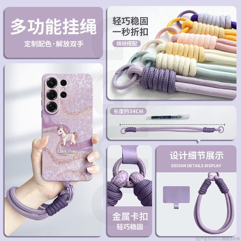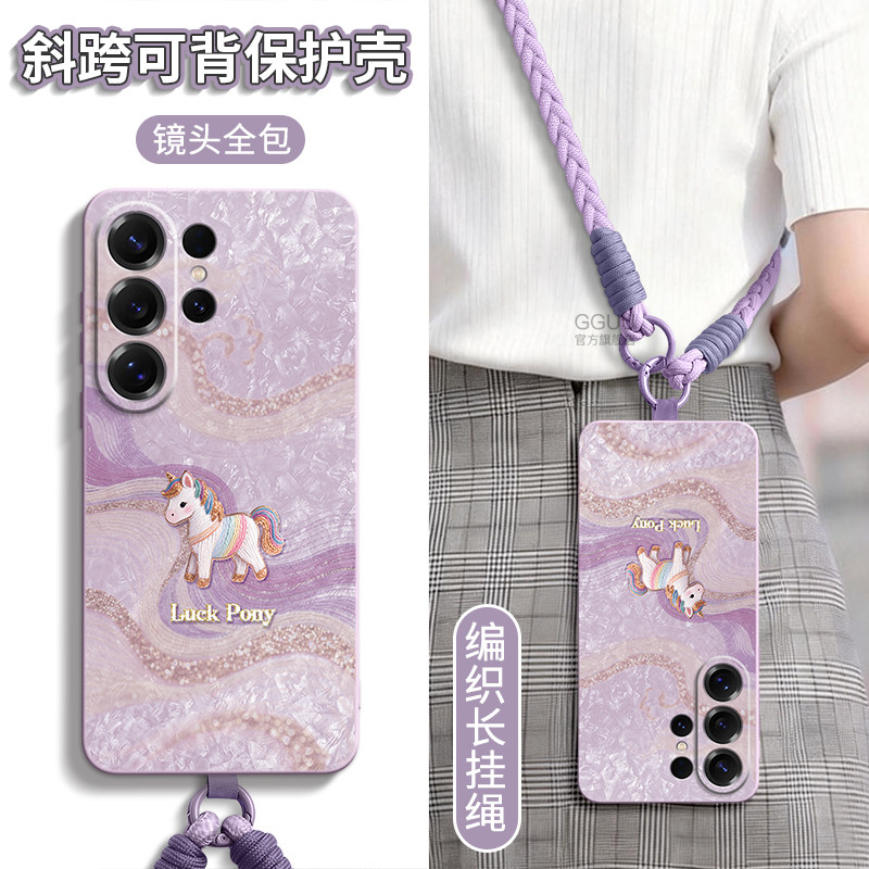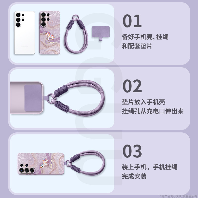 S23腕链带挂绳年 端S24女 丝绸小马适用三星S26手机壳S26ultra保护套plus新款 S25防摔samsung硅胶Galaxy紫色