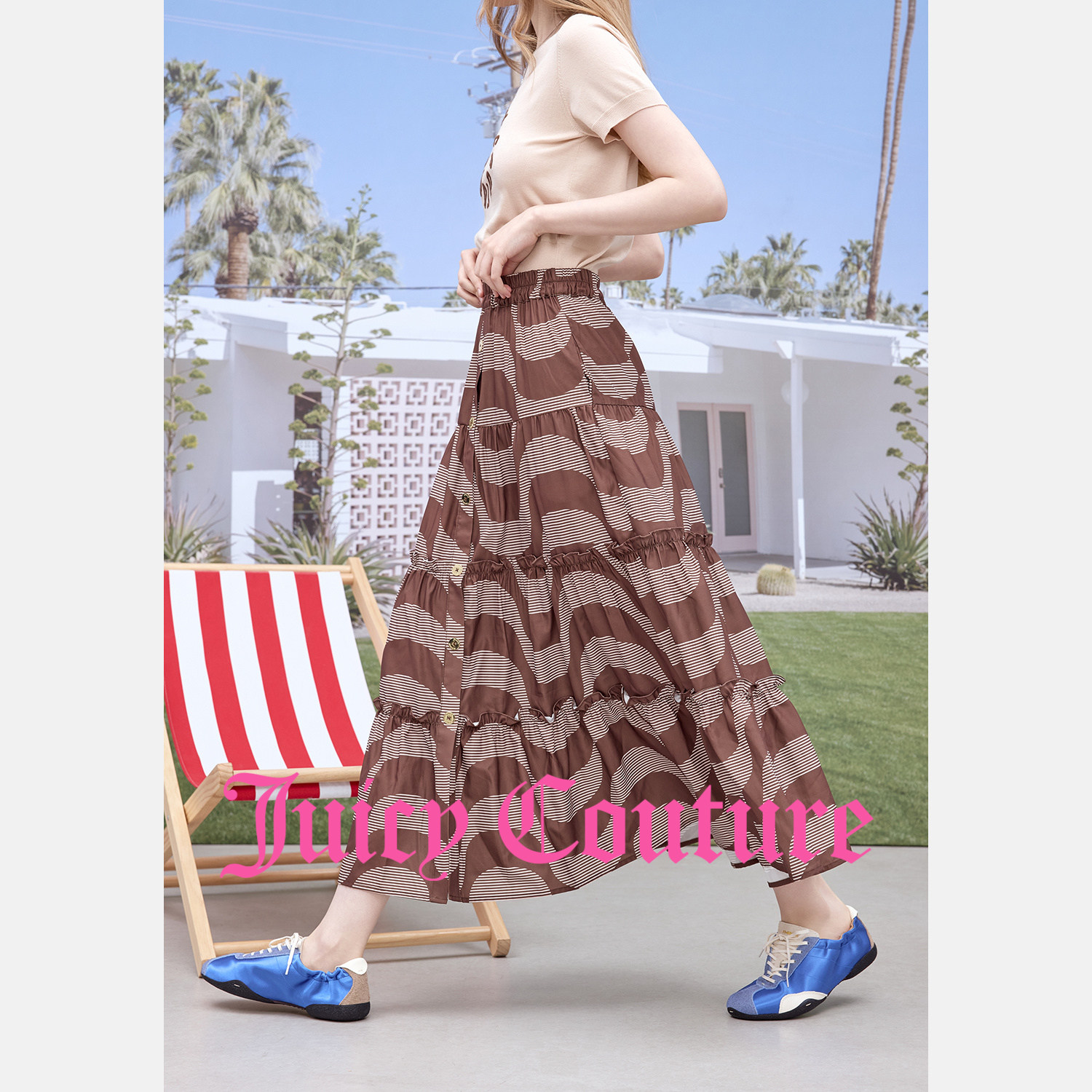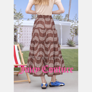 波纹印花荷叶边伞摆中长裙 新款 Juicy Couture橘滋半身裙女26夏季