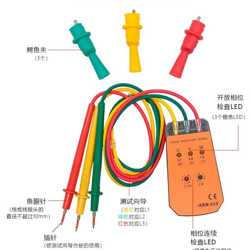 胜利VC850A三相交流电相序仪850C相位计850D相序表850E相位检测仪