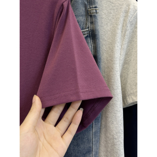 T恤女夏季 休闲体恤衫 胖MM时尚 遮肉半袖 上衣潮 大码 乌梅紫正肩短袖