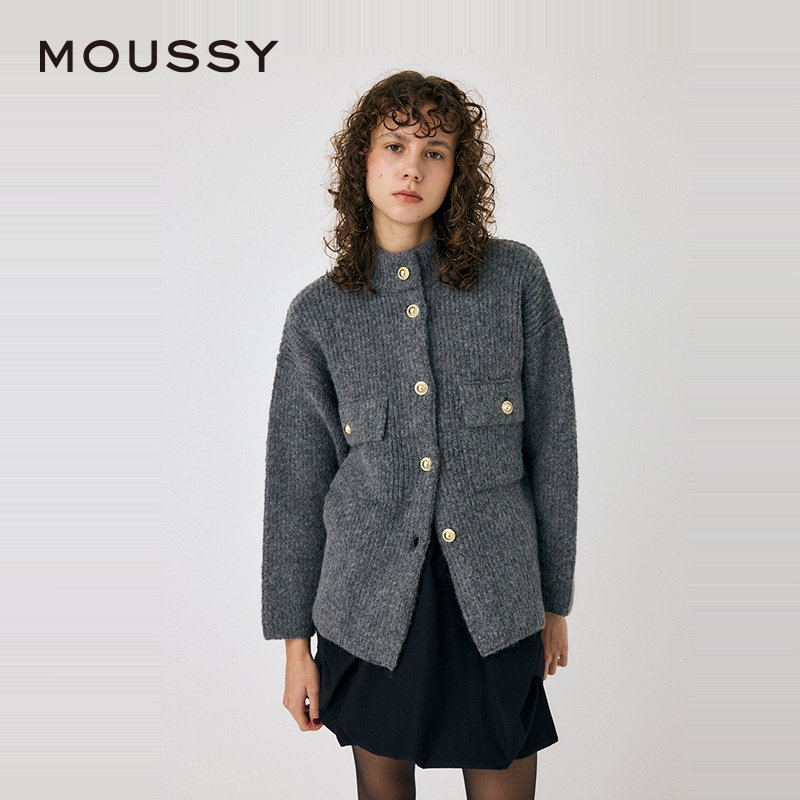 2025秋季 女010IA770 新品 毛针织开衫 7891 复古风立领长袖 MOUSSY