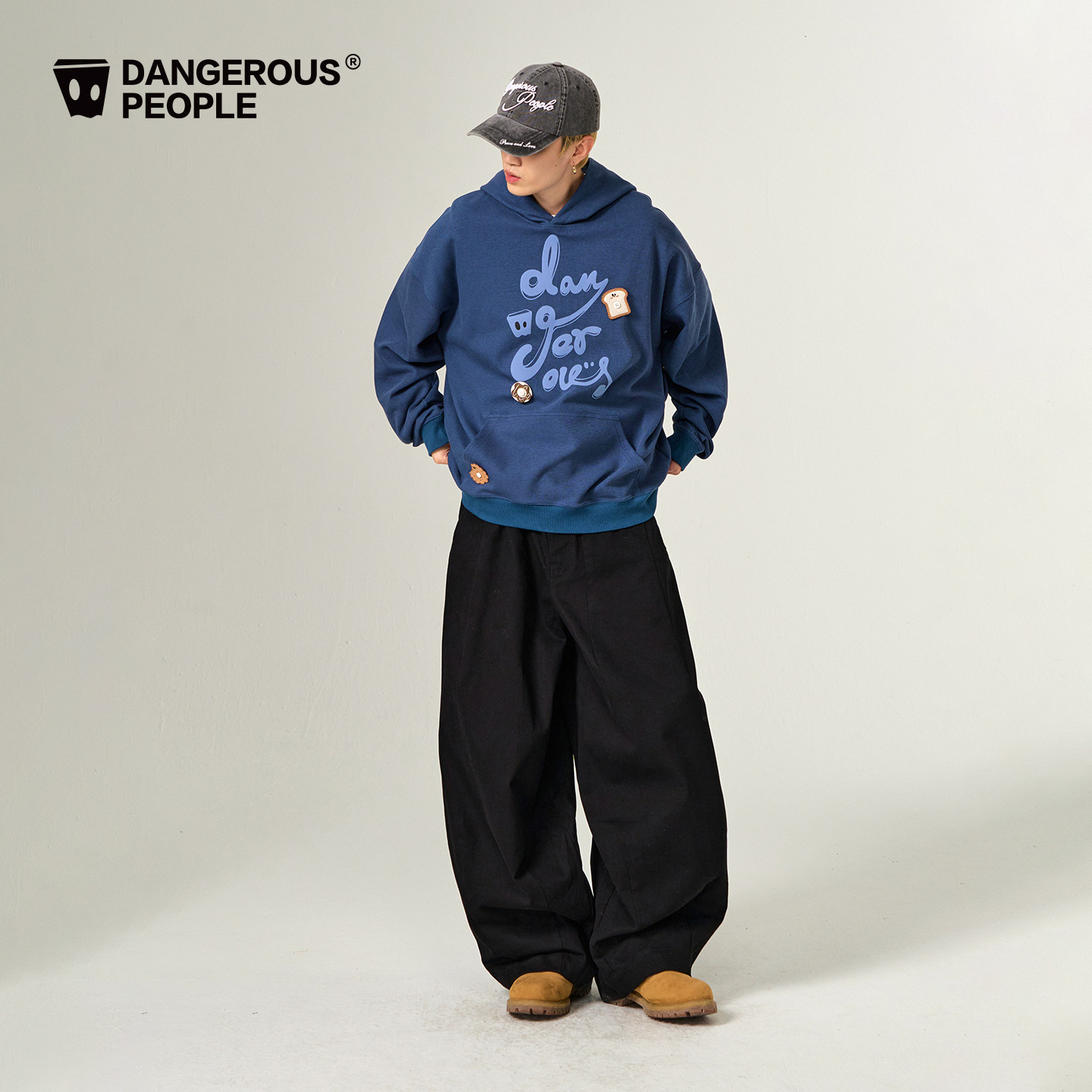 Dangerouspeople薛之谦dsp宽松廓形磨毛长裤 潮牌百搭休闲直筒裤