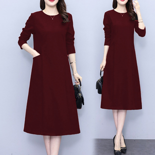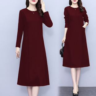 酒红中长款 秋冬装 a字裙 连衣裙女高级感2025新款 气质妈妈针织长袖