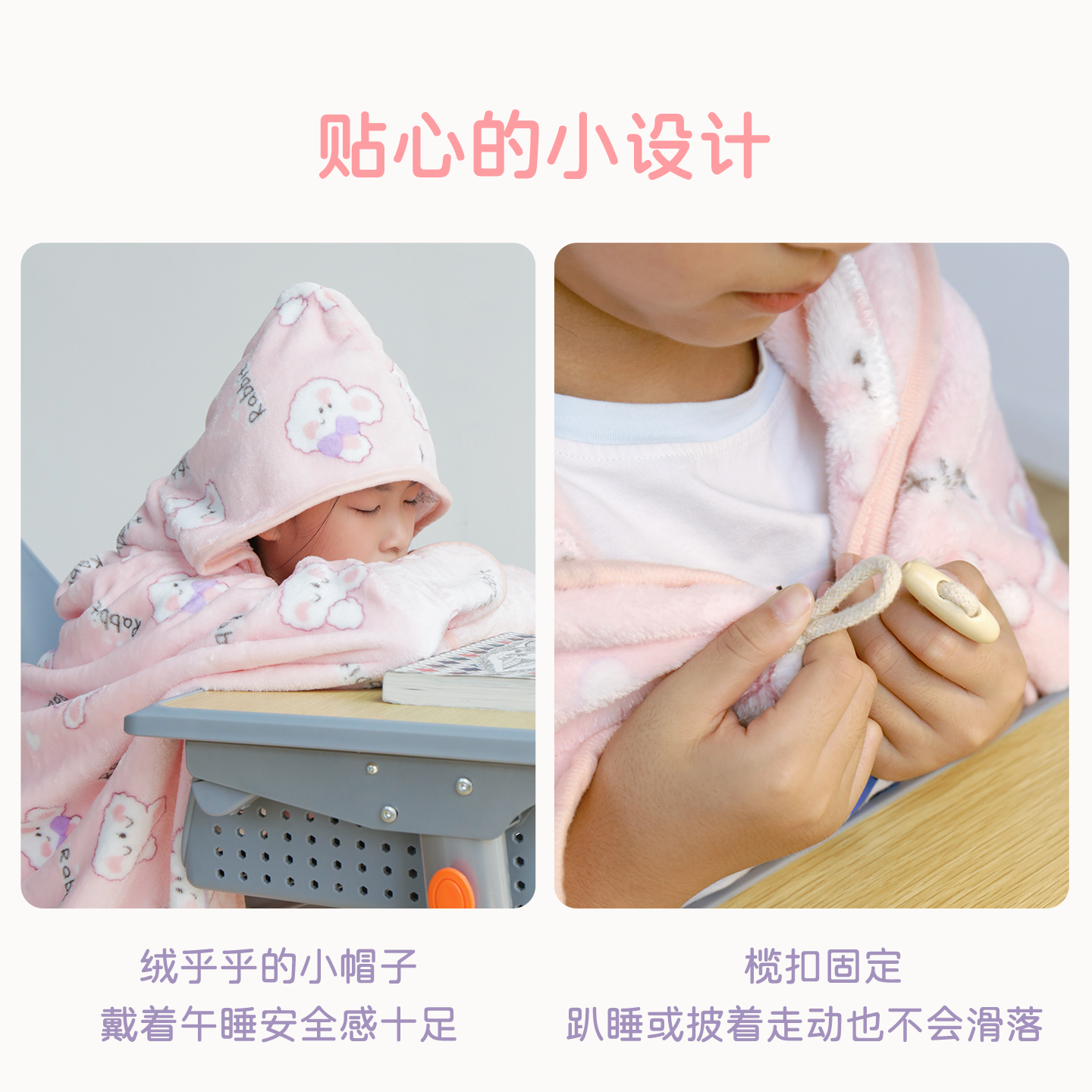空调午休盖毯 儿童教室趴睡披肩小毛毯可收纳 新款 学生午睡毯带帽