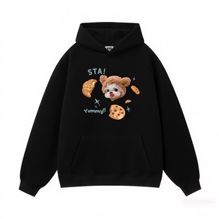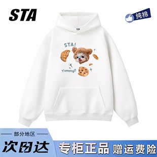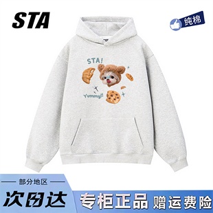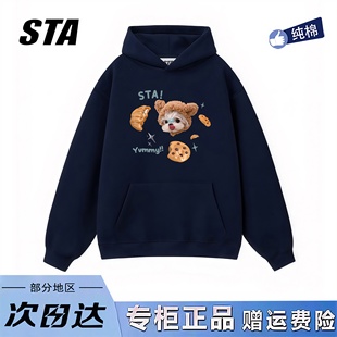 STA旗舰店趣味小狗印花连帽卫衣男女秋冬季 潮牌重磅纯棉外套 美式