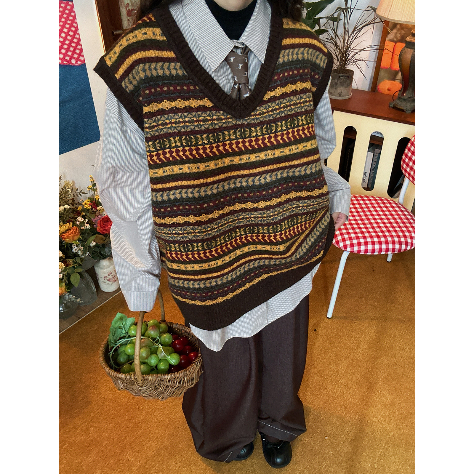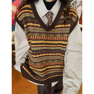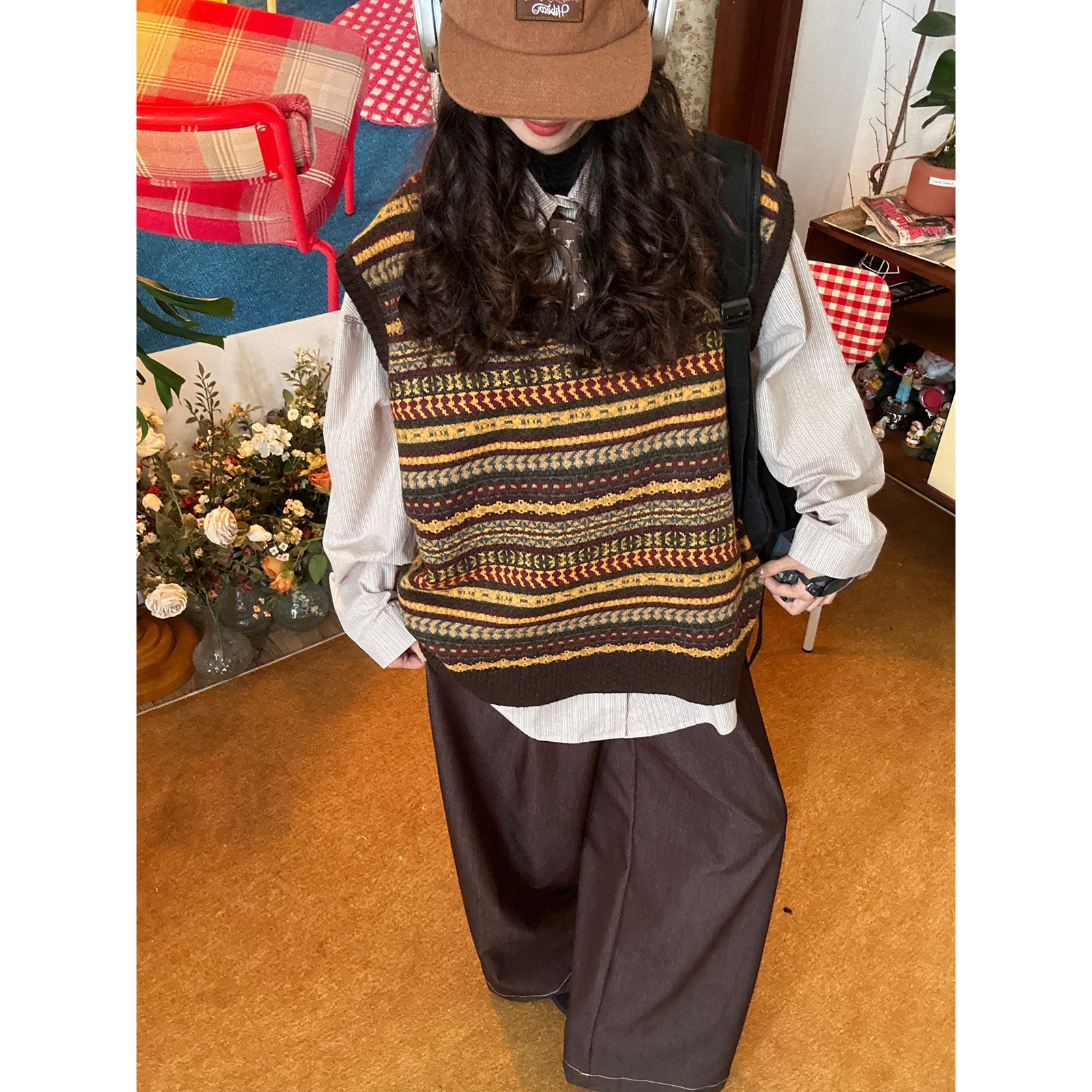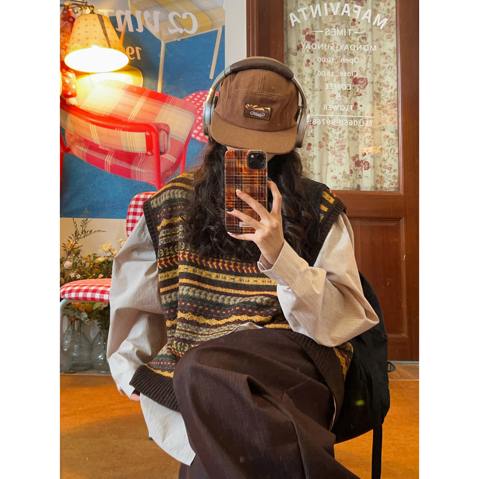 MULVAN 百搭叠穿套头上衣 麻花v领针织马甲背心女春秋外穿无袖