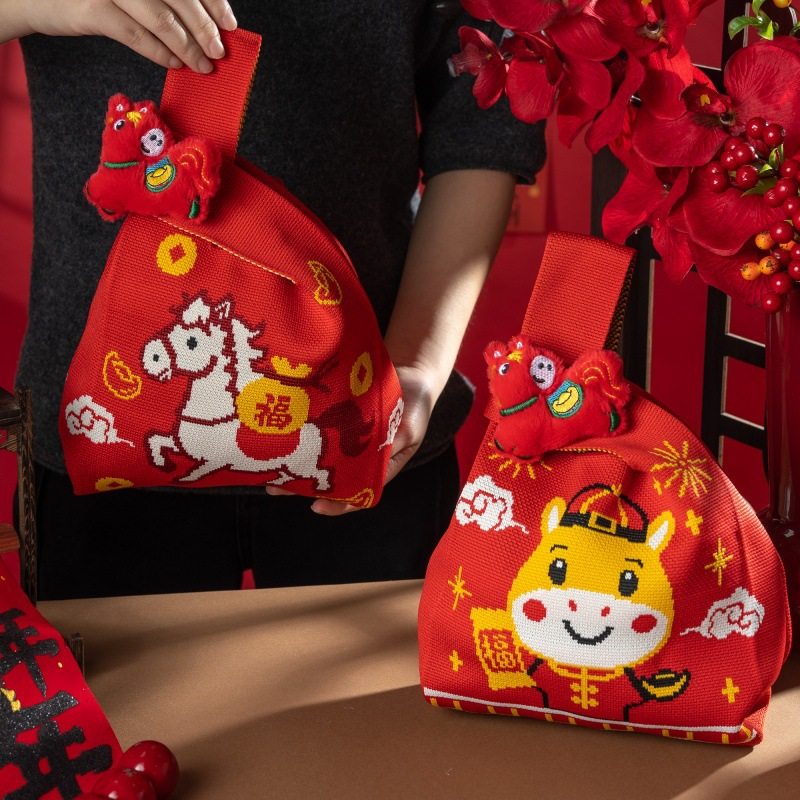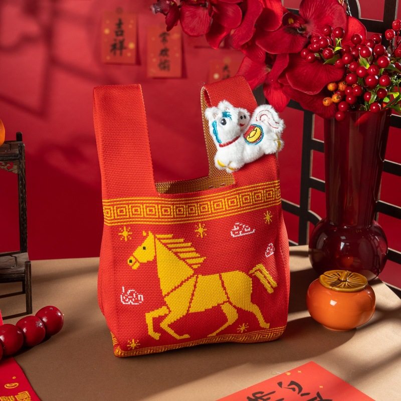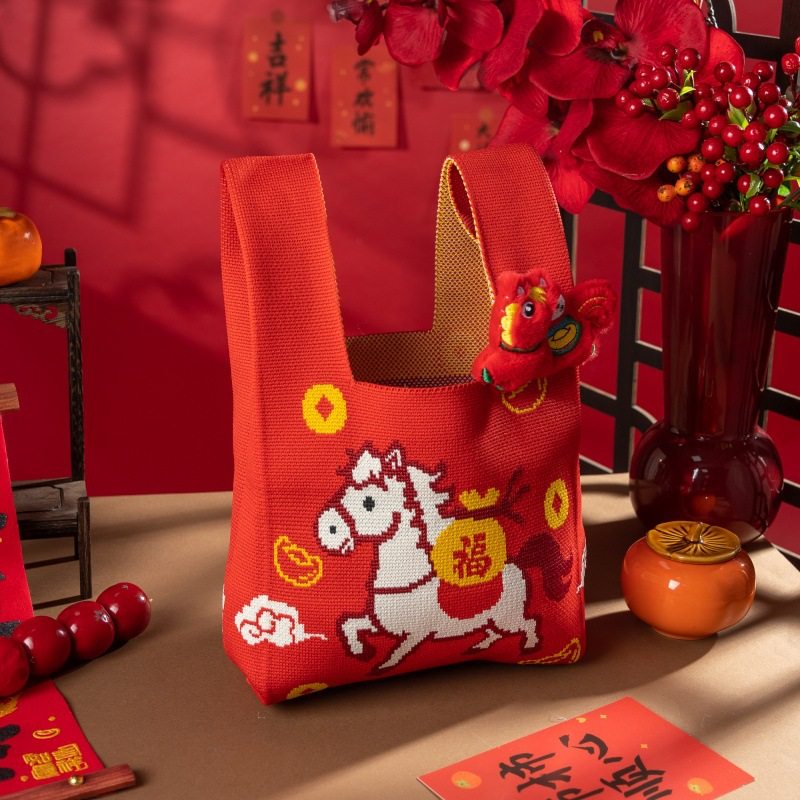 马年礼品袋礼盒针织包手提袋伴手礼袋新年坚果糖果袋盒礼品包袋子