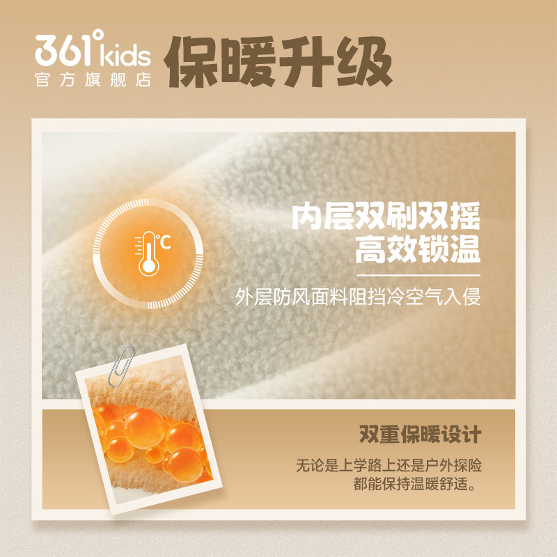 儿童休闲运动上衣 新款 361童装 男童加厚加绒套头卫衣女童2025冬季
