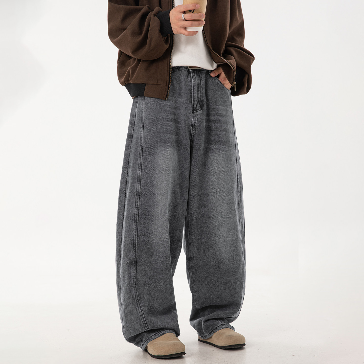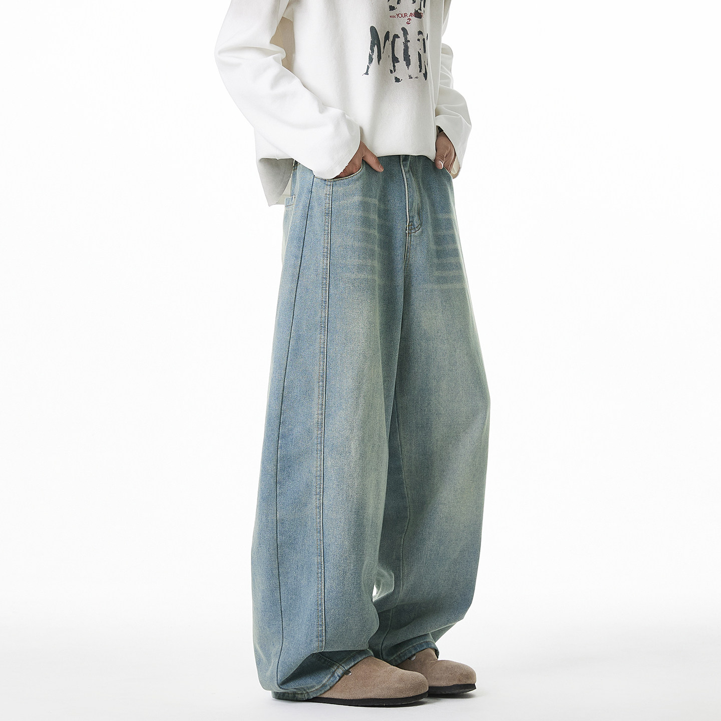 立体裁剪宽松百搭垂感阔腿裤 复古纯色休闲牛仔裤 子 UP美式 OFF