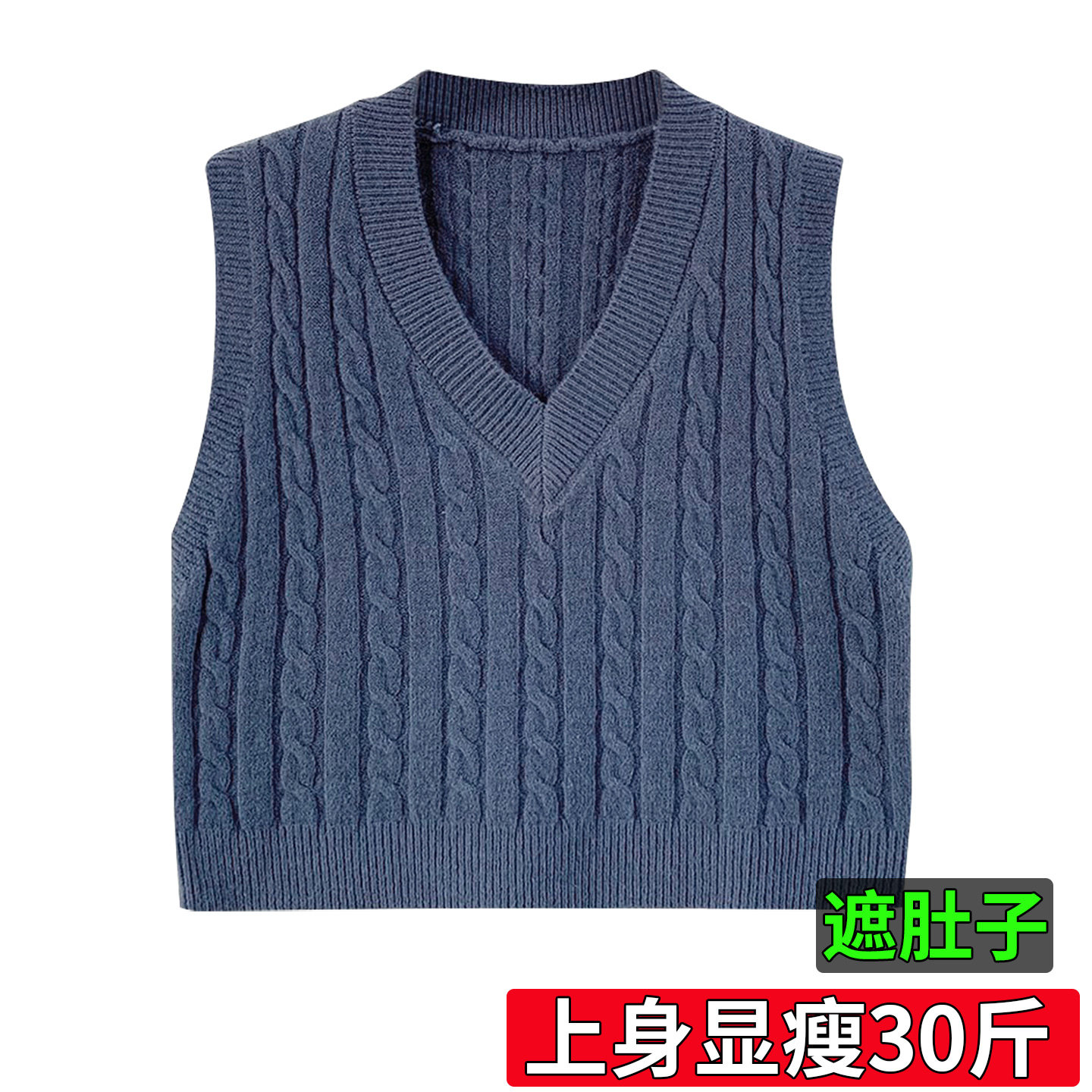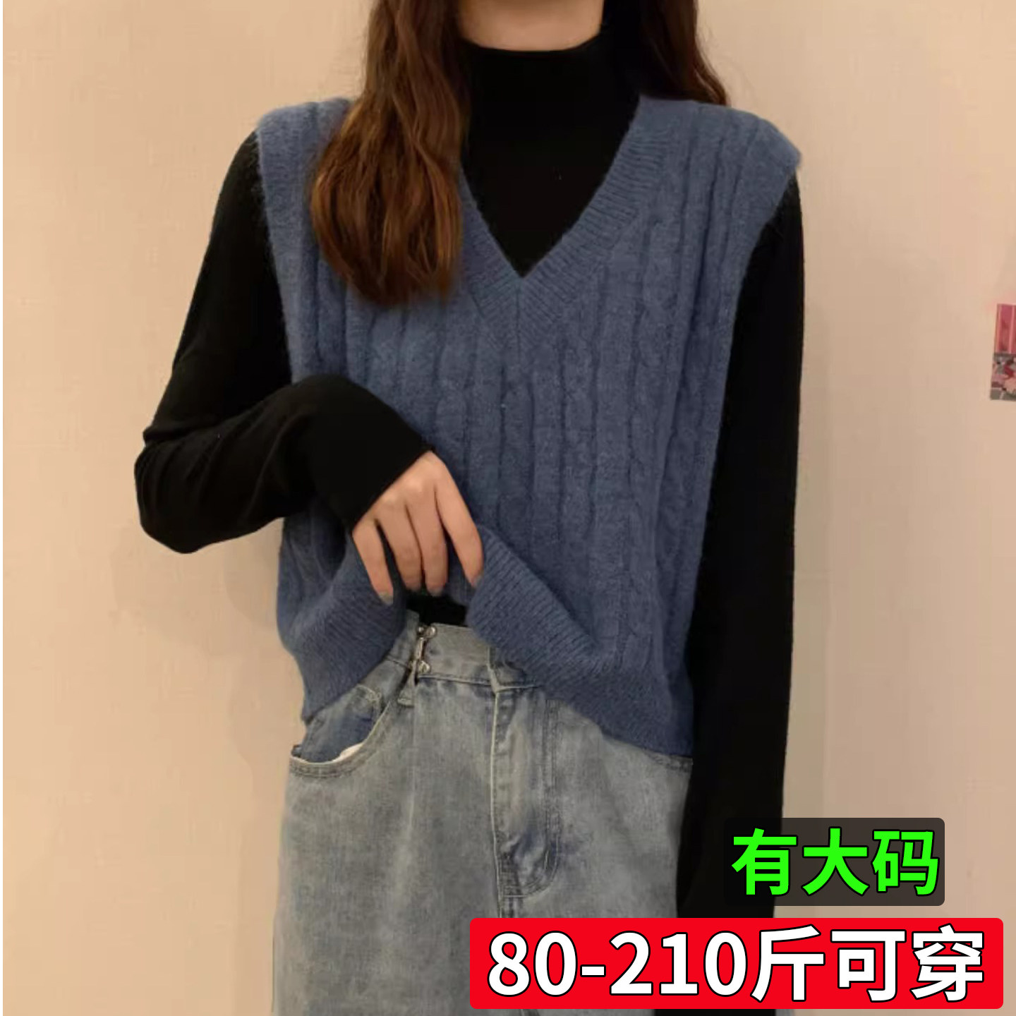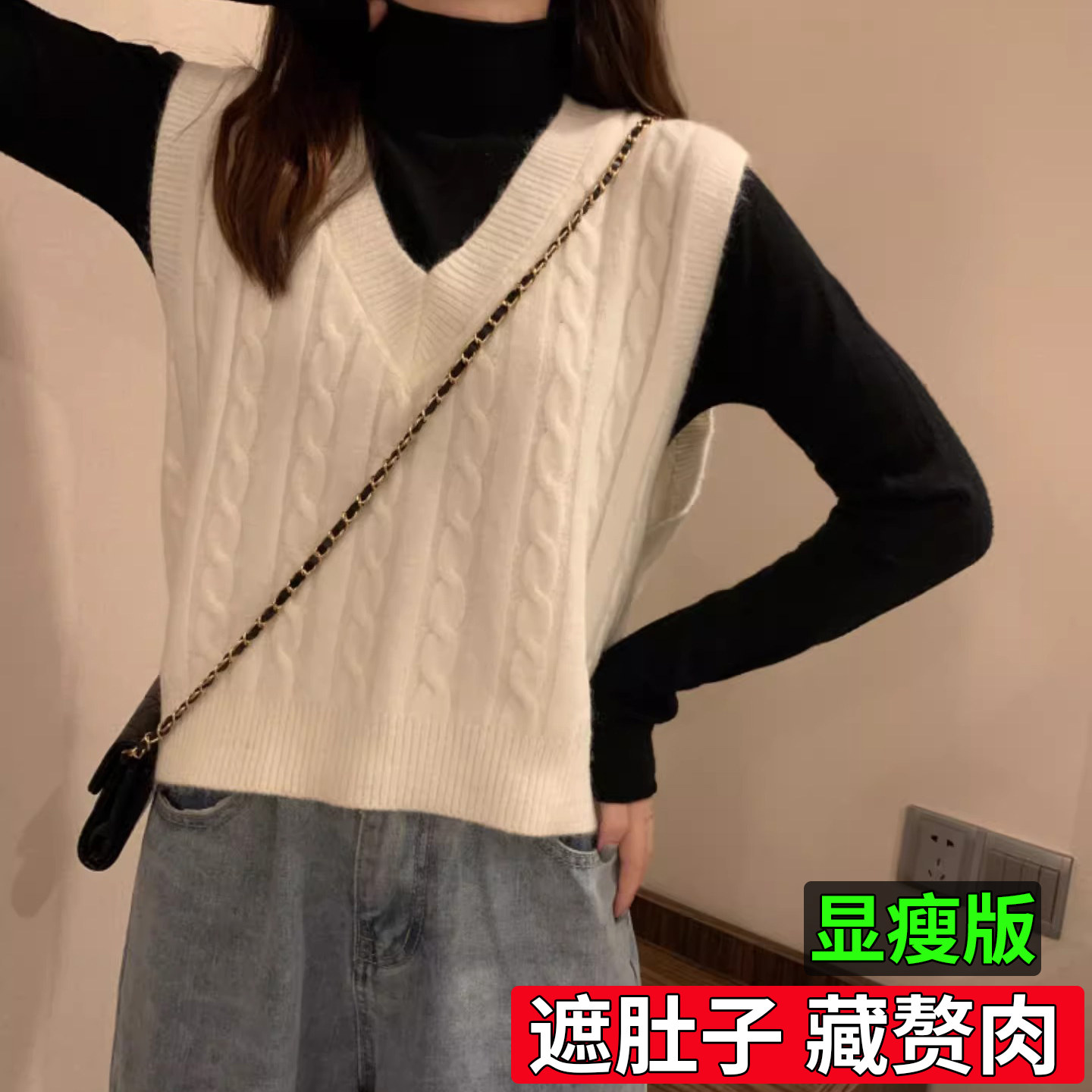 大码 胖mmV领麻花扭绳针织马甲女2025秋冬外搭马夹叠穿毛衣背心